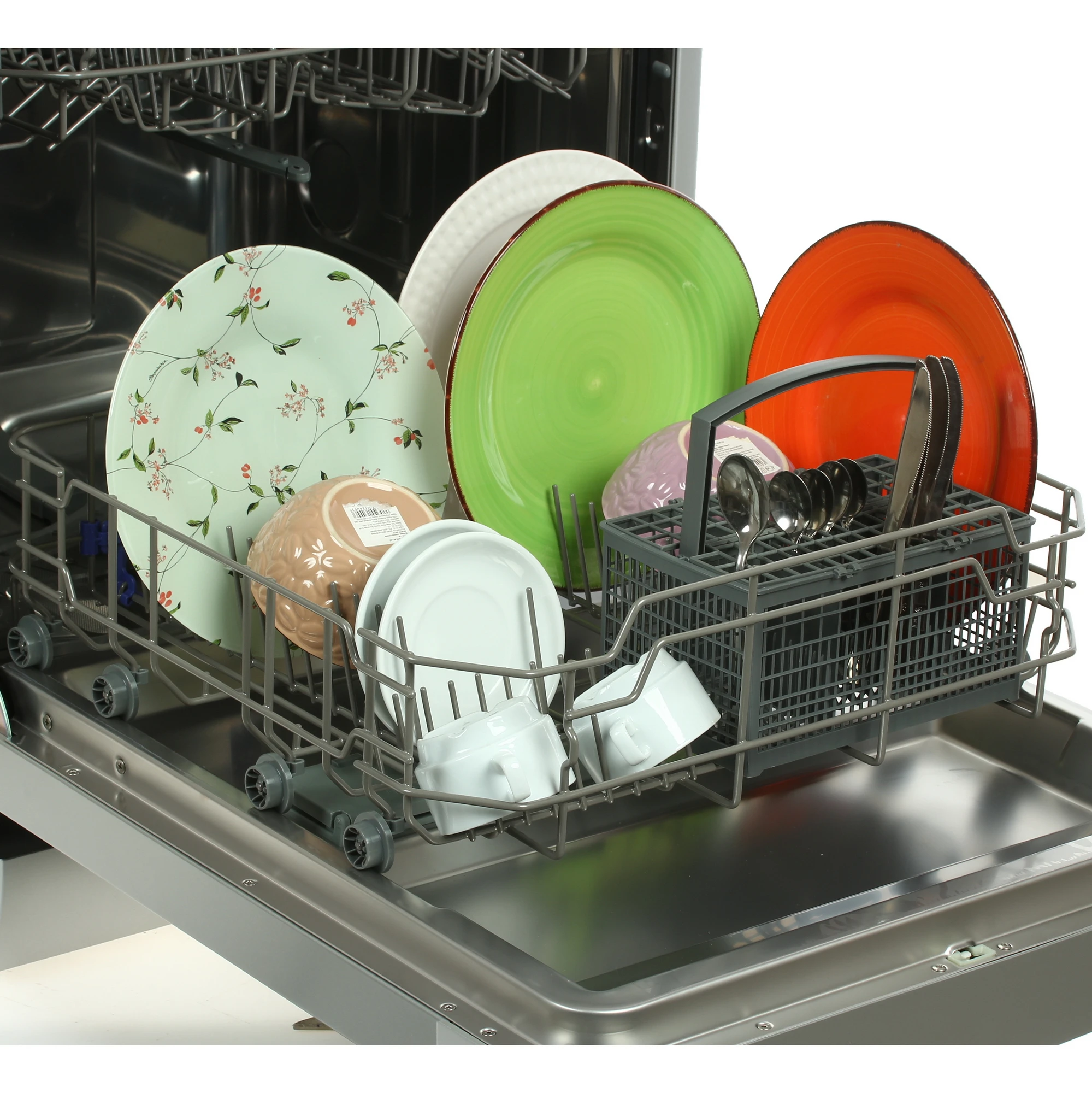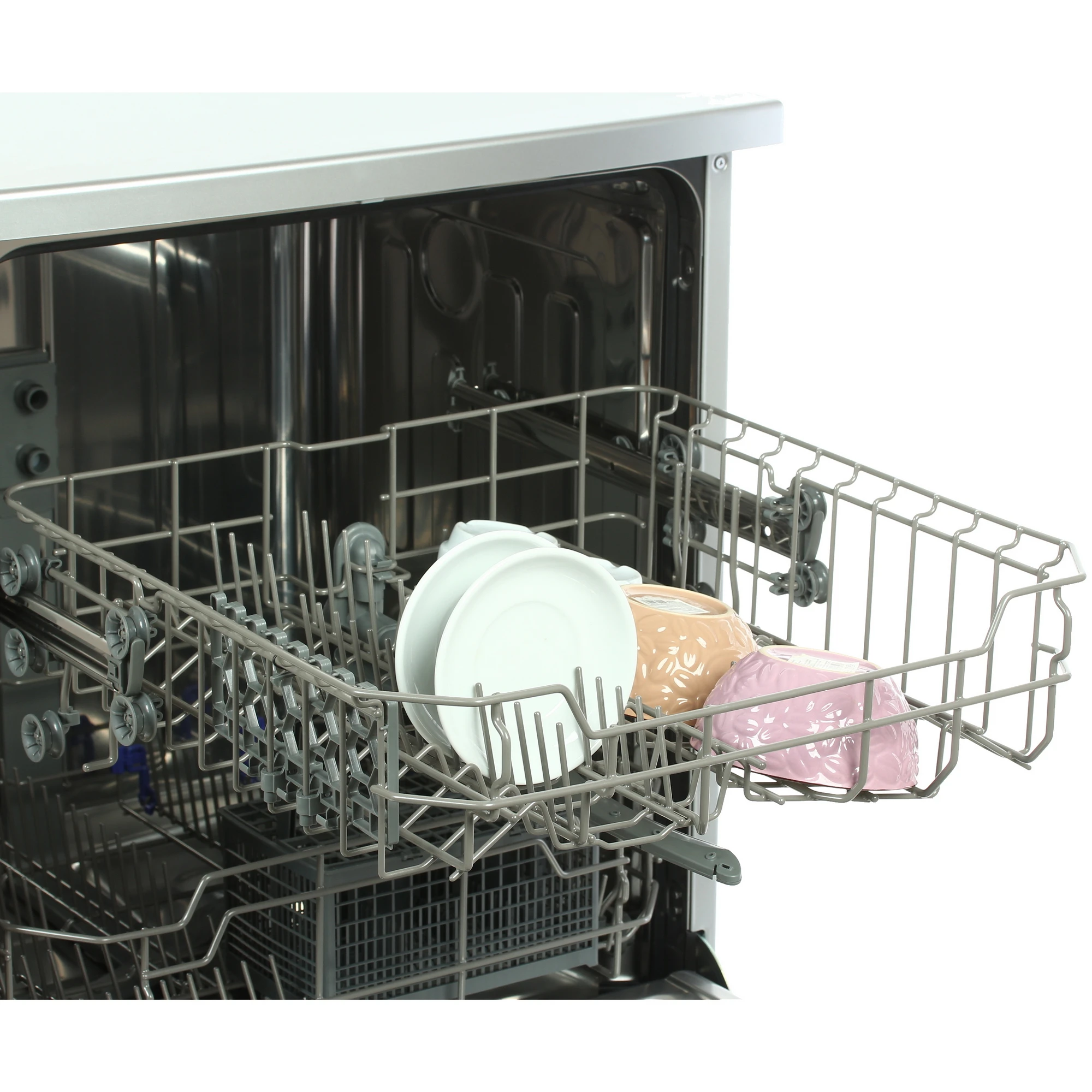 Если посуда сильно загрязнена или в ней засохла пища, то можете применить режим предварительного замачивания. Посуда моется в воде при температурах от 45 до 70 градусов, для хрупкой посуды из стекла можно использовать также отдельный режим. После мытья в Daewoo Electronics DDW-M1211S посуда будет не только чистой, но и сухой, о чем позаботится конденсационная сушка. О наличии соли или ополаскивателя вы узнаете благодаря индикации. Уровень шума машинки при работе минимален – всего 49 дБ, так что это отдельно стоящее устройство не доставит никакого дискомфорта.