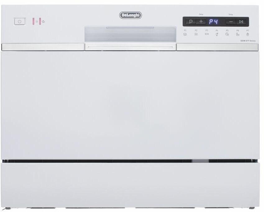 Отдельностоящая посудомоечная машина DeLonghi DDW07T Onics сочетает компактные размеры и отличный набор режимов работы. Она вмещает 6 комплектов посуды при ширине 55 см и глубине 50 см. Корпус нейтрального белого цвета, поэтому устройство отлично будет смотреться в практически любом интерьере.