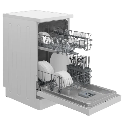 Посудомоечная машина IndesitDFS 1A59 может вместить для мытья до 10 комплектов посуды. В модели предусмотрено 5 программ. Прибор оснащен функцией отложенного старта, с помощью которой момент запуска программы можно отложить на 9 часов.