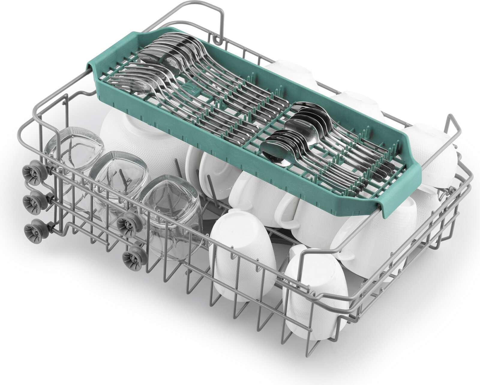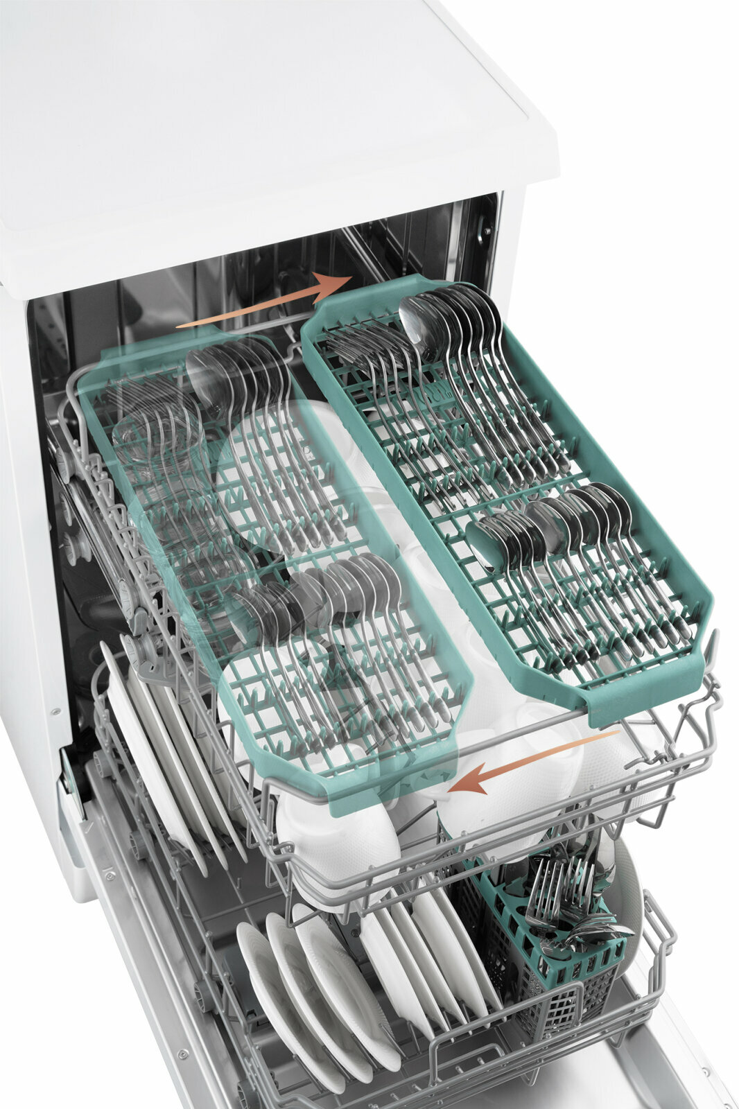 Три корзины, позволяющие разместить отдельно от остальной посуды в верхнем лотке сразу все ложки, вилки и ножи, обеспечивая при этом их наилучшее мытьё