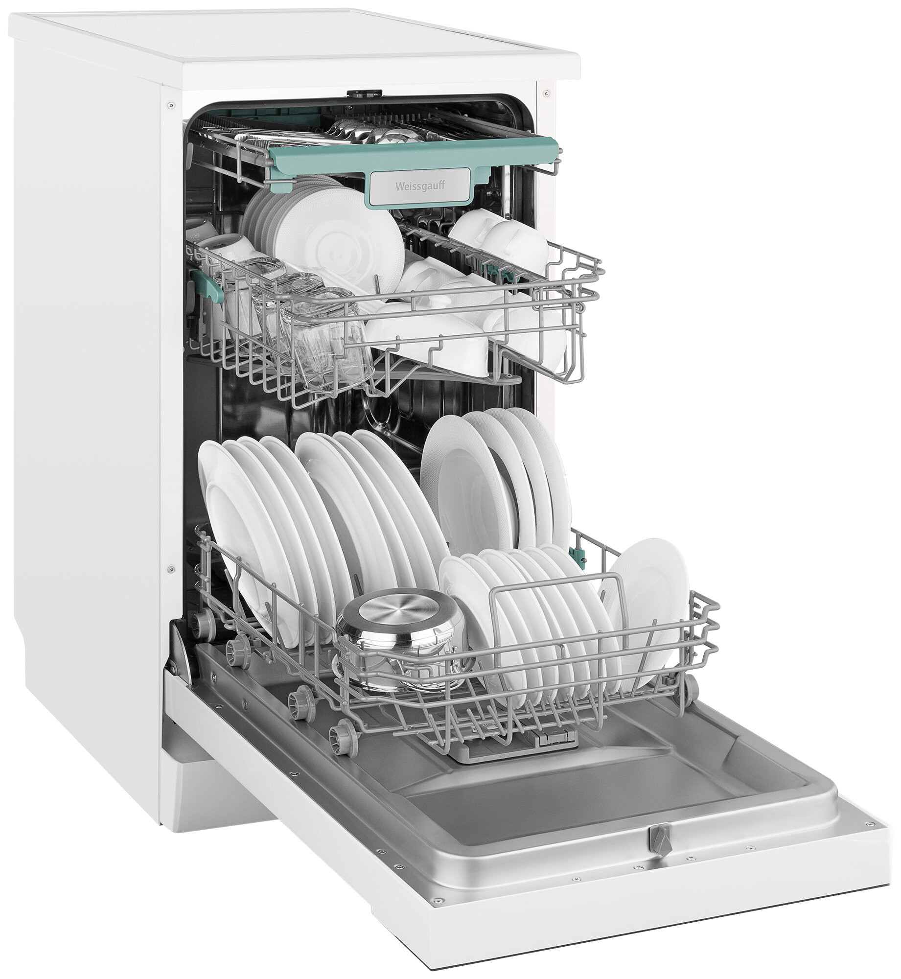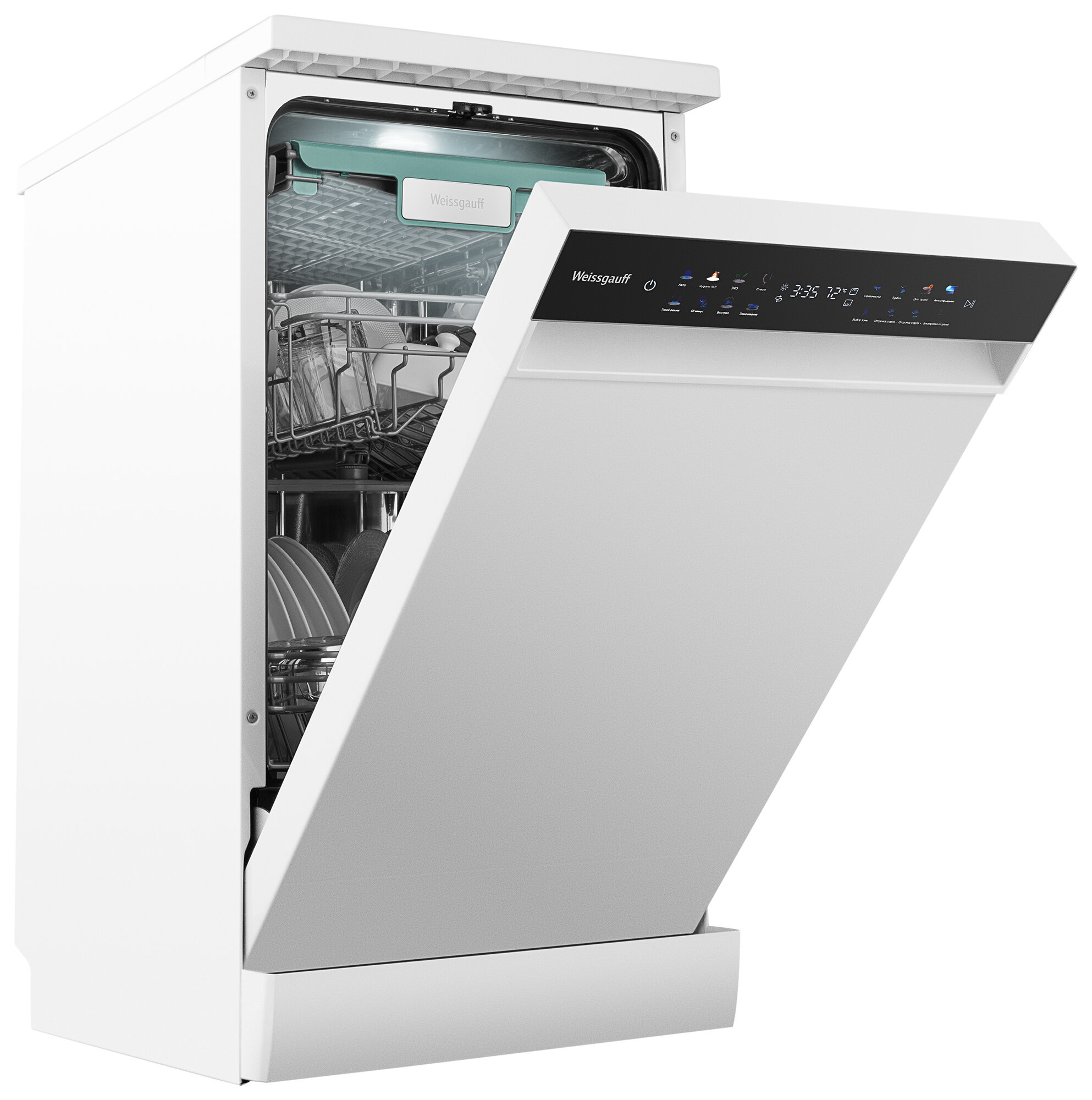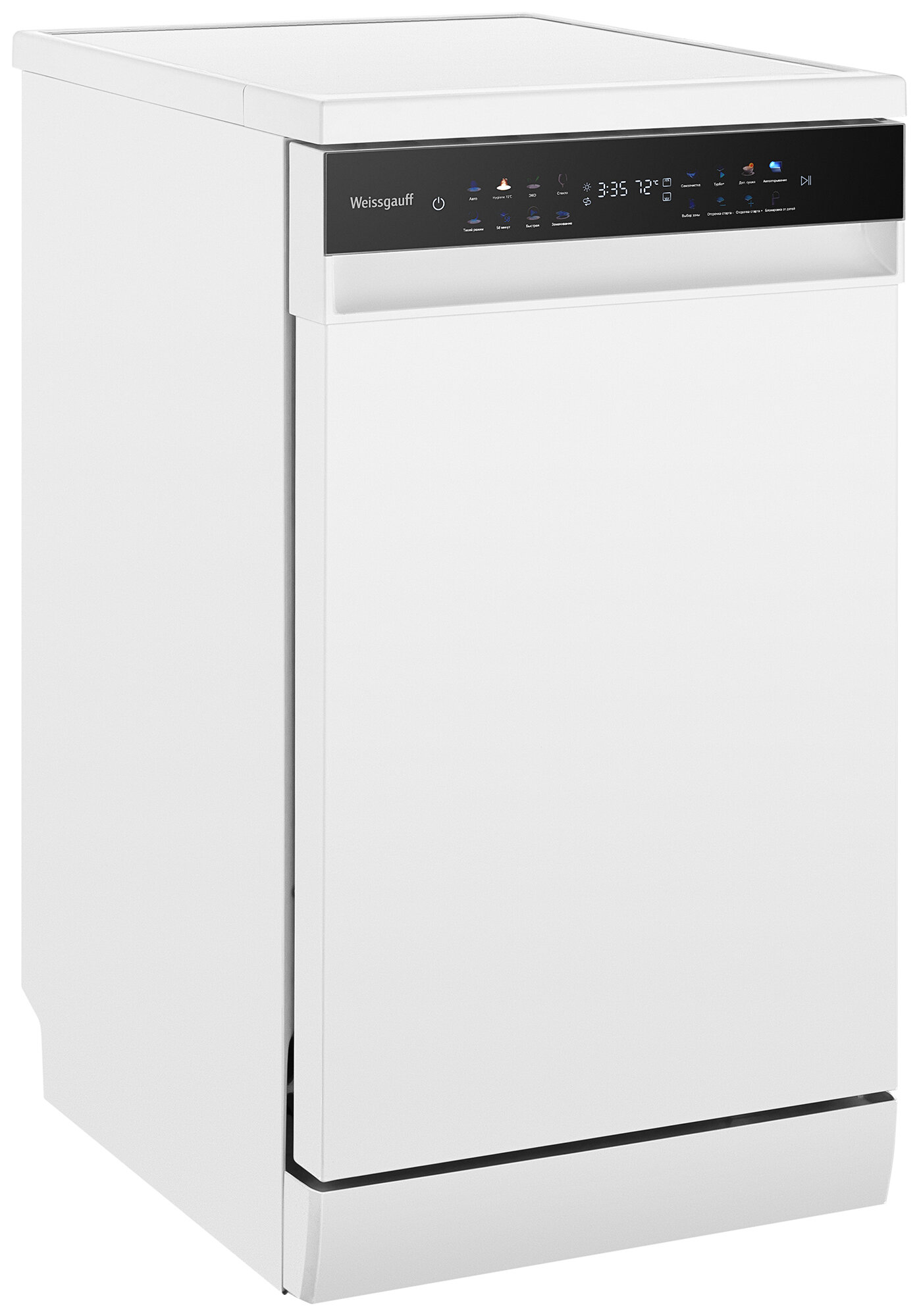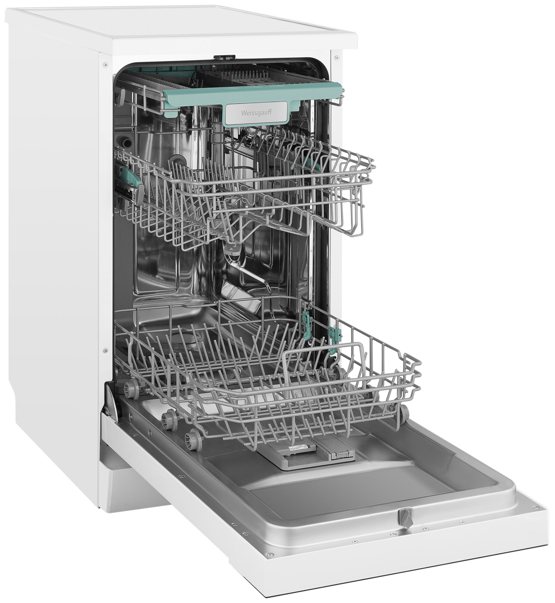 Узкая отдельностоящая посудомоечная машина Weissgauff c корпусом, выполненным в белом цвете, с полностью электронным управлением, инверторным двигателем и функцией автоматического открытия дверцы, не только сэкономит место на вашей кухне, но и обеспечит идеальный результат: 3 корзины позволят расположить посуду оптимальным образом для достижения наилучшего качества мытья, а вместимость посуды до 10 комплектов - это не только экономия места на кухне, но и отличное качество мытья вашей посуды.