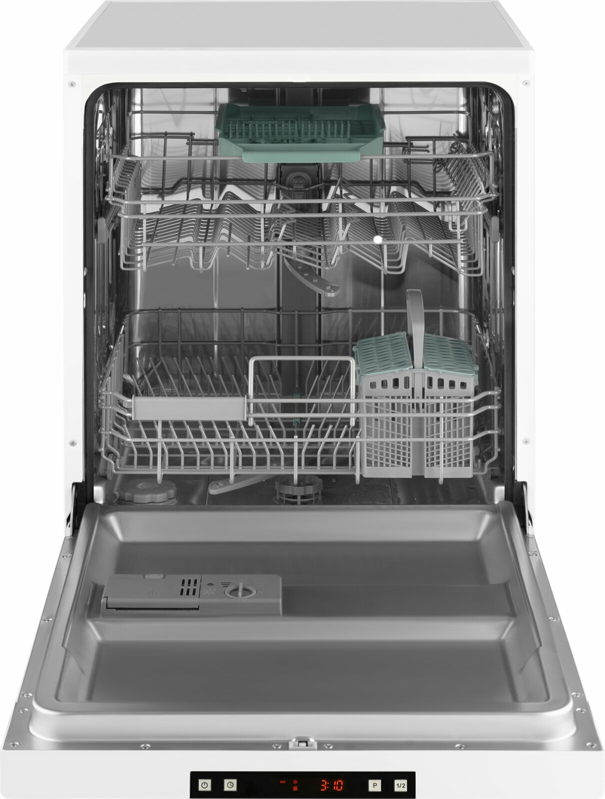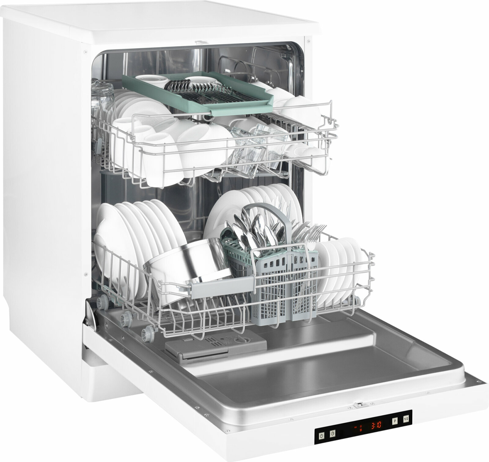 Полноразмерная отдельностоящая посудомоечная машина Weissgauff, оснащенная тремя корзинами, с полностью электронным управлением, вместимостью 14 комплектов и функцией половинной загрузки - это современное и эффективное решение для быстрого и качественного мытья посуды на вашей кухне.
