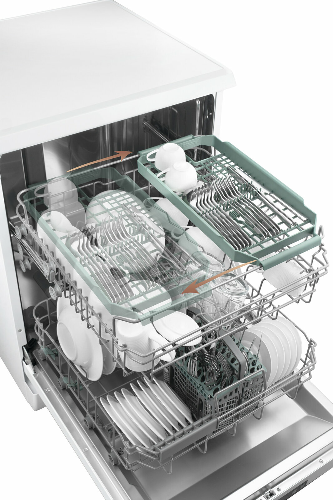 Три корзины, позволяющие разместить отдельно от остальной посуды в верхнем лотке сразу все ложки, вилки и ножи, обеспечивая при этом их наилучшее мытьё