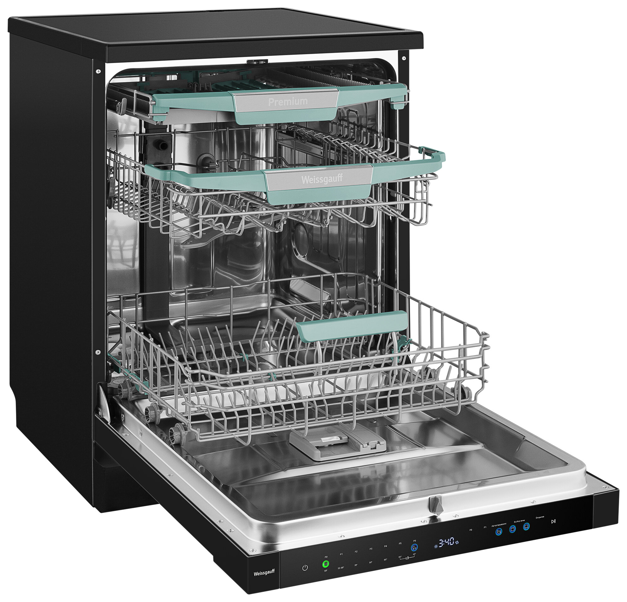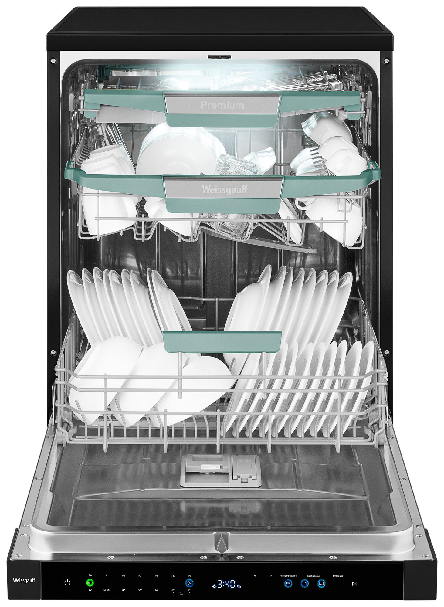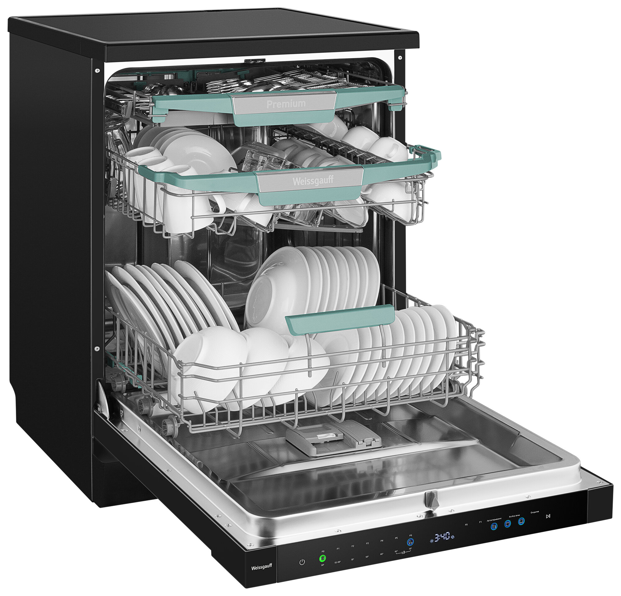 Полноразмерная отдельностоящая посудомоечная машина Weissgauff с автоматическим открыванием дверцы по завершении цикла, инверторным двигателем, тремя корзинами и вместимостью посуды до 14 комплектов, что делает данную модель не только эффективной, но и по-настоящему удобной в работе! - это одна из наиболее передовых моделей 2024 года среди посудомоечных машин Weissgauff!