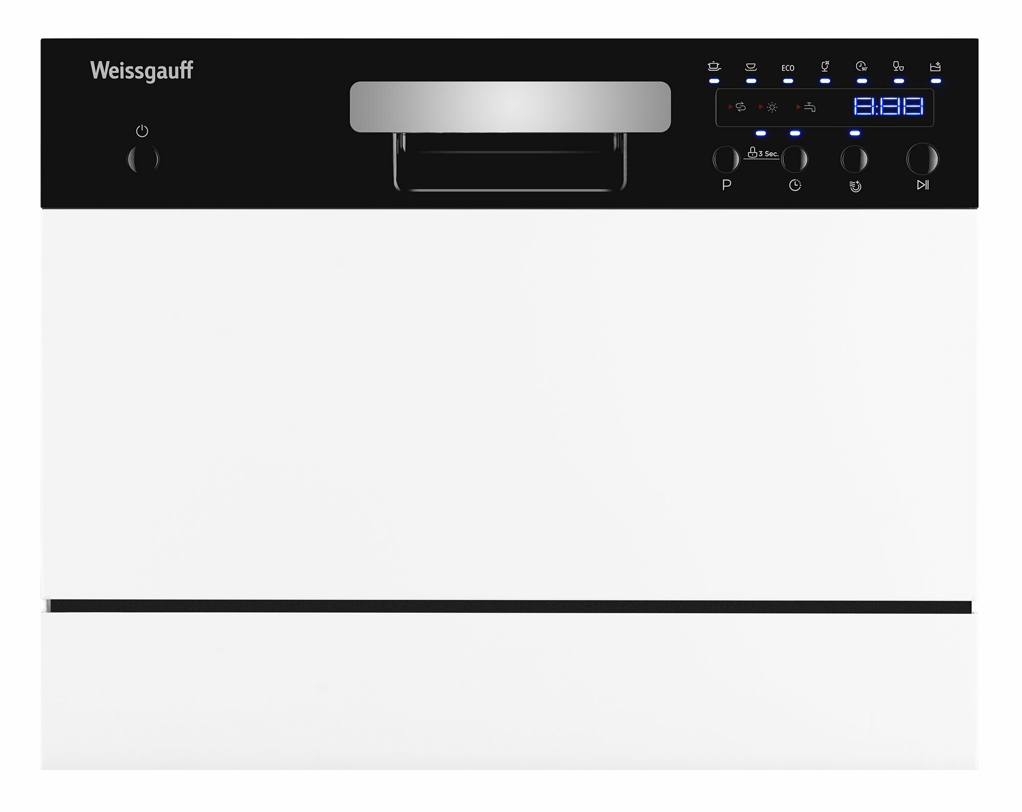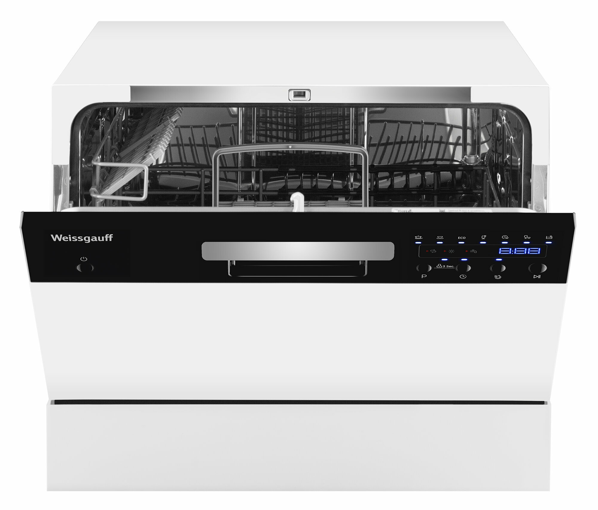 Настольная посудомоечная машина Weissgauff, выполненная в белом цвете с черной панелью управления, оснащенная функцией самоочистки, полностью электронным управлением и богатым набором из 7 программ - это модель, которая отличается не только компактностью, но и высокой и функциональностью.