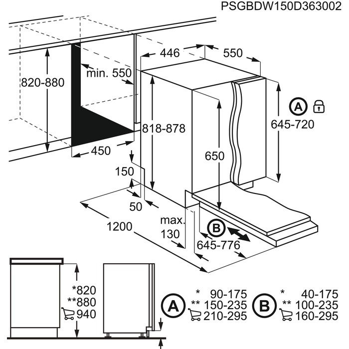 Размеры для встраивания: 88x45x55см