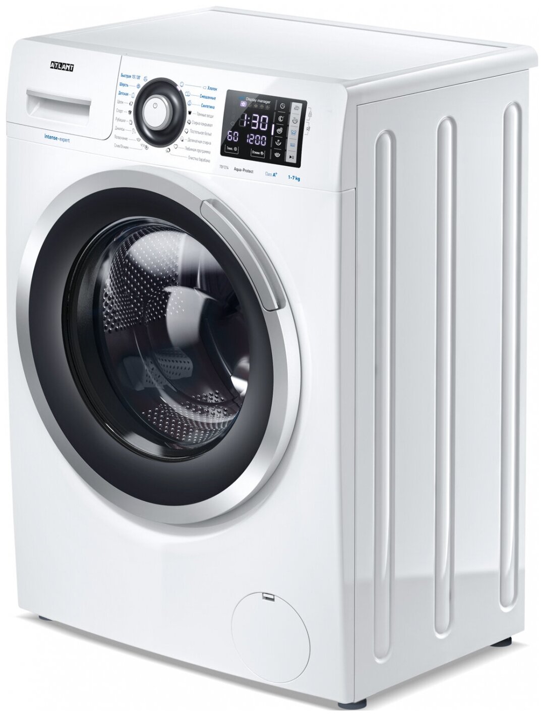 выбор скорости отжима, выбор температуры стирки, контроль баланса, контроль за уровнем пены, отложенный старт, сигнал окончания стирки