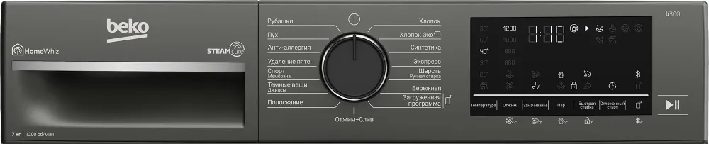 Программы стирки: Быстрая стирка, Замачивание, Стирка изделий из синтетики, Стирка изделий из хлопка, Стирка пуховых вещей, Стирка спортивной одежды, Удаление пятен