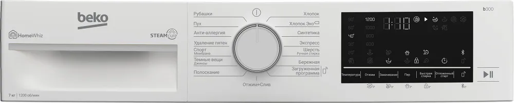 Программы стирки: Быстрая стирка, Замачивание, Стирка изделий из джинсовой ткани, Стирка изделий из синтетики, Стирка изделий из хлопка, Стирка спортивной одежды, Стирка пуховых вещей, Удаление пятен