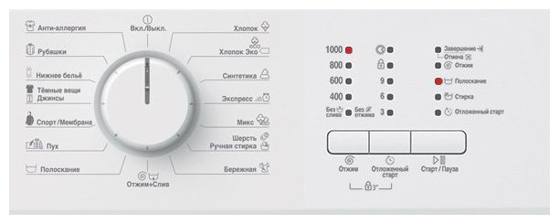 - стирка деликатных тканей, экономичная стирка, стирка джинсов, стирка черных вещей, стирка спортивной одежды, стирка пуховых вещей, программа стирки смешанных тканей, быстрая стирка, предварительная стирка