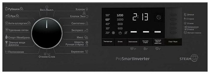 Программы быстрая стирка, гипоаллергенная стирка, дополнительное полоскание, замачивание, отжим, полоскание, предварительная стирка, ручная стирка, стирка в большом количестве воды, стирка верхней одежды, стирка деликатных тканей, стирка детских вещей, стирка джинсов, стирка паром, стирка пуховых вещей, стирка синтетики, стирка смешанных тканей, стирка спортивной обуви, стирка спортивной одежды, стирка хлопка, стирка цветных вещей, стирка черных вещей, стирка шерсти, удаление пятен, экономичная программа