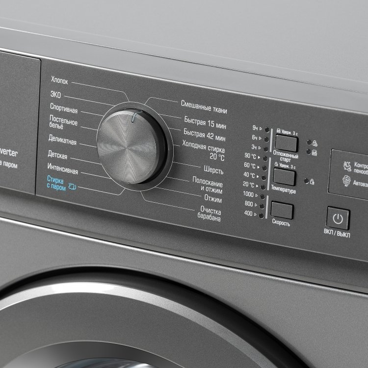 Опции стирки ЭКО, Детская, Постельное белье, Спортивная, Стирка с паром