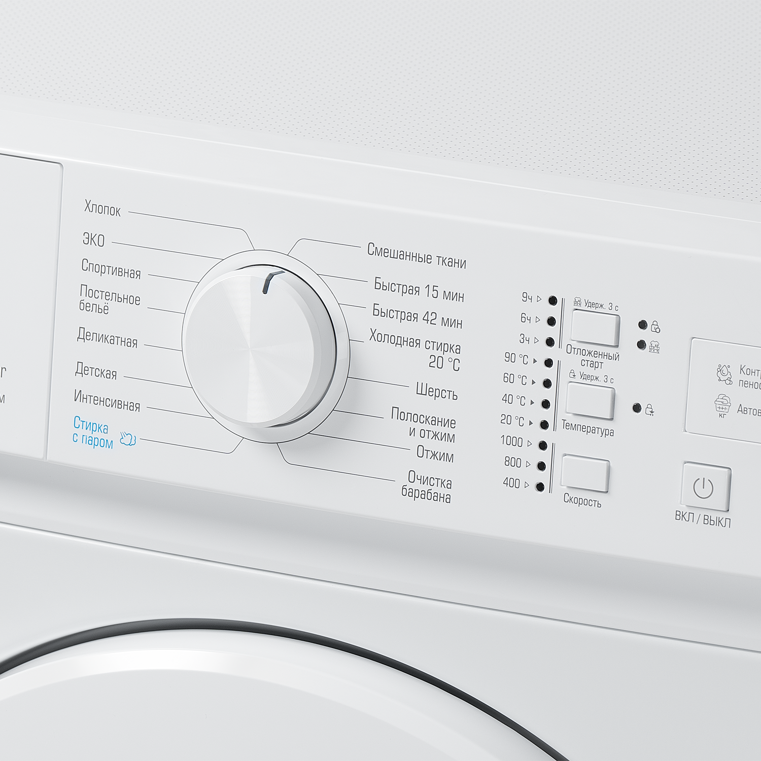 Специальные программы ЭКО, Детская, Постельное белье, Спортивная, Стирка с паром