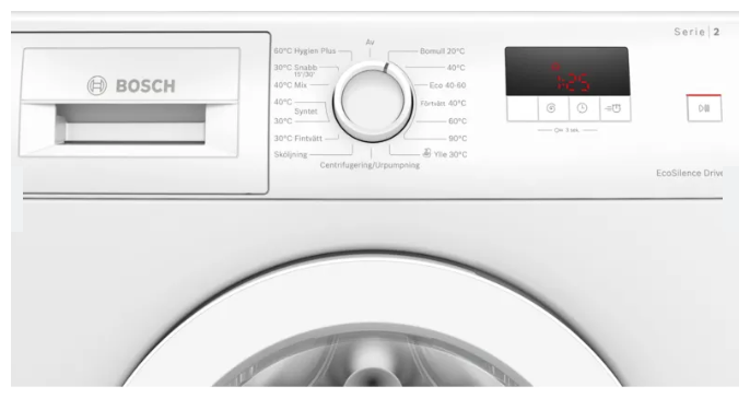 выбор температуры стирки, отложенный старт, сигнал окончания стирки