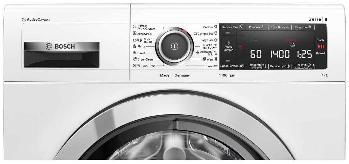 Индикация: хода программы, времени до окончания стирки, режима энергоэффективности SmartEcoControl