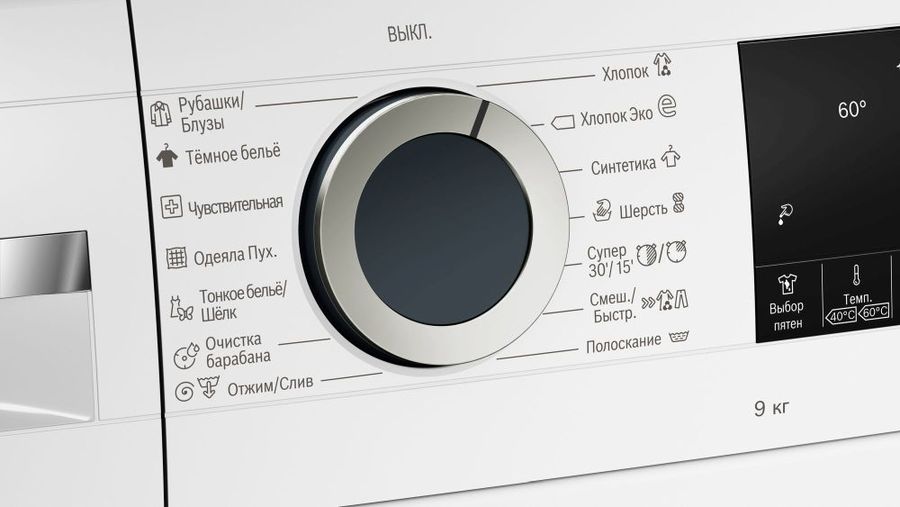 Программы Рубашки/Блузы, Очистка барабана, Смешанное белье, Полоскание, Синтетика, Хлопок, Хлопок Эко, Чувствительная, Супер 15/Супер 30, Пуховые одеяла, Ручная стирка шерсти, Тонкое белье/Шелк, Отжим/Слив, Тёмное бельё
