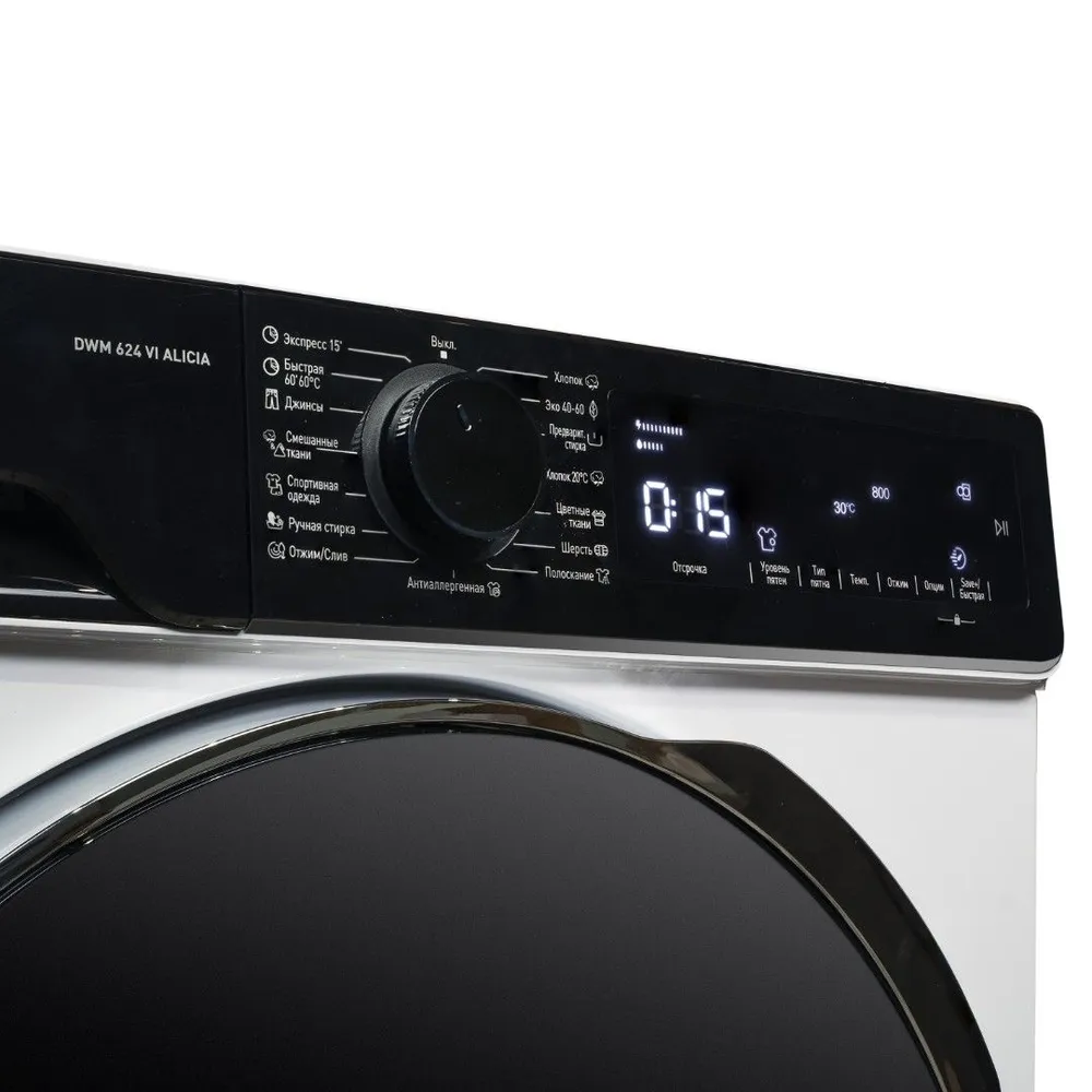 Программы стирки: Быстрая стирка, Стирка изделий из джинсовой ткани, Стирка смешанных тканей, Стирка спортивной одежды, Ручная стирка, Отжим, Слив, Стирка изделий из хлопка, Предварительная стирка, Цветное белье, Стирка изделий из шерсти, Полоскание