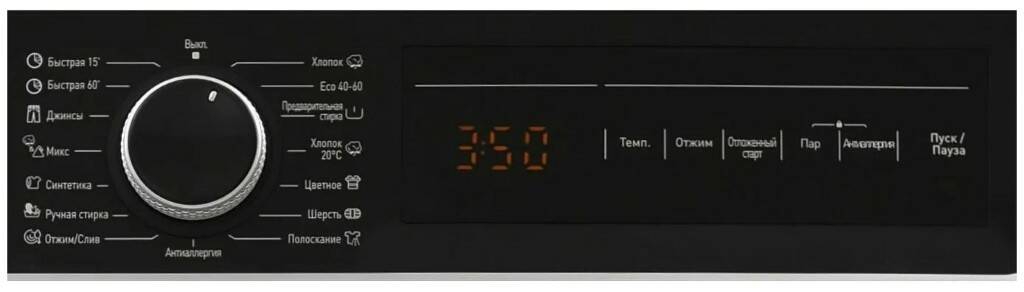 выбор скорости отжима, выбор температуры стирки, отложенный старт