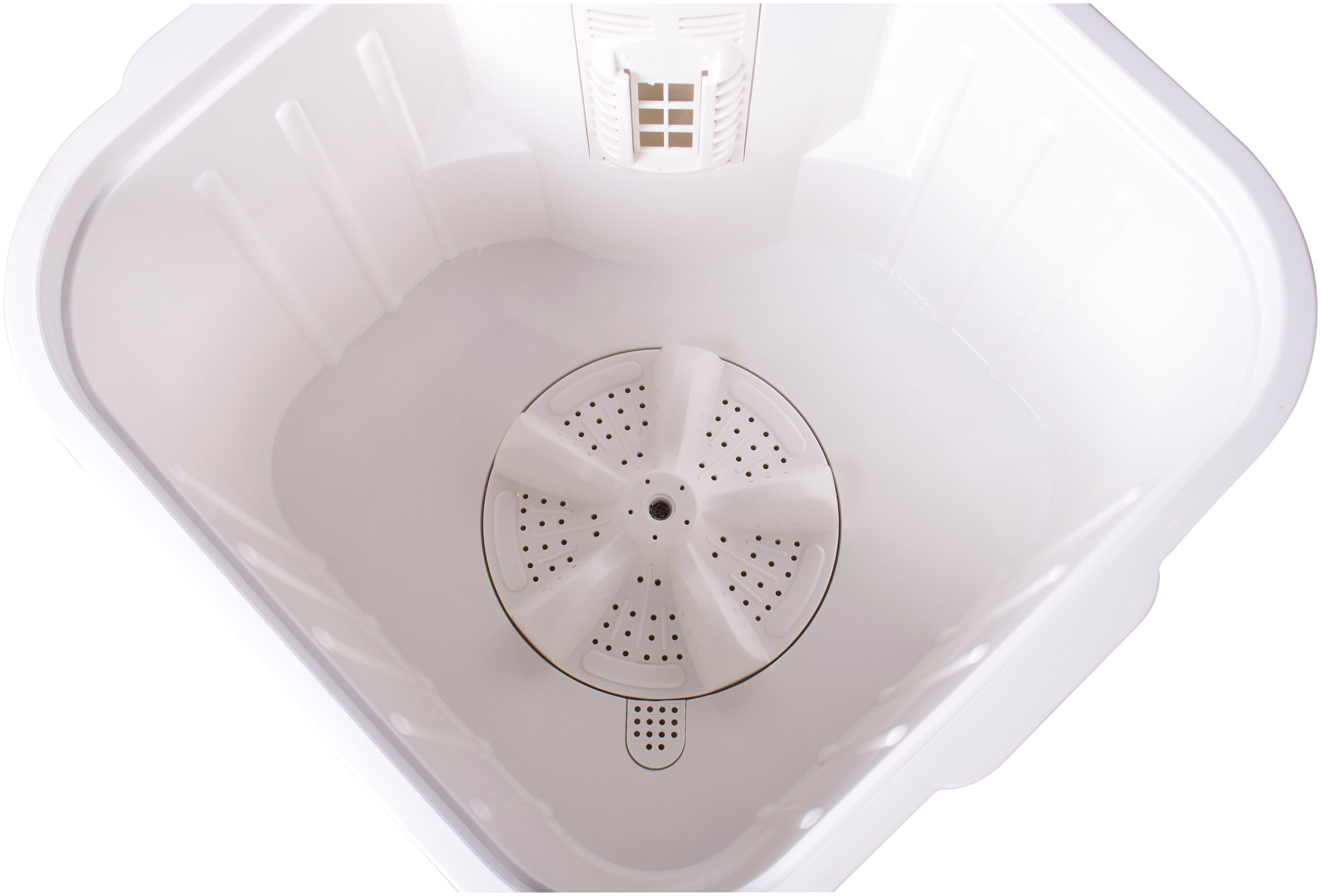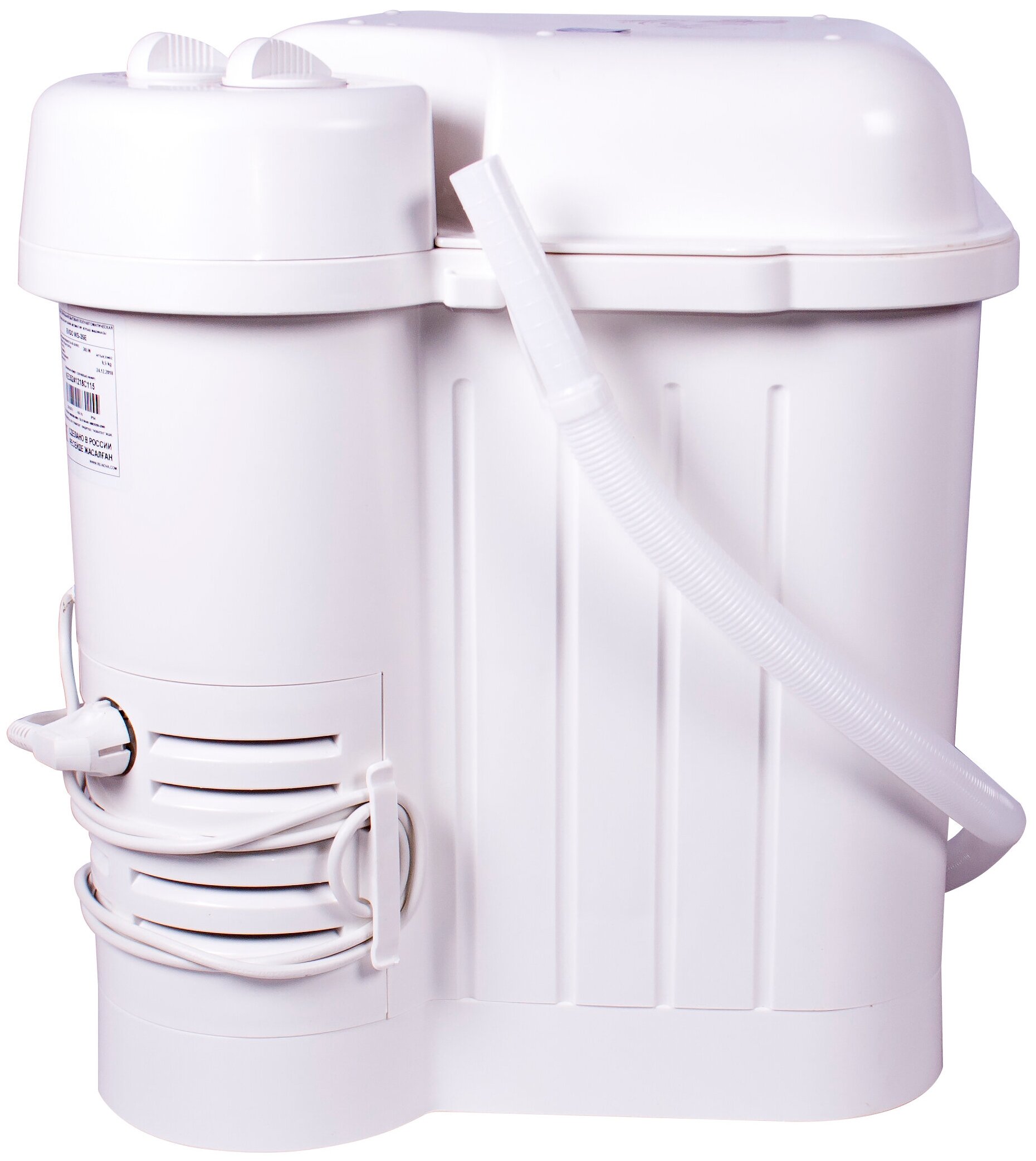 таймер стирки до 15мин, крышка-тазик емкостью 9л, реверс, фильтр для сбора ворса и пуха, отжим отсутствует; максимальная потребляемая мощность (Вт) 245
