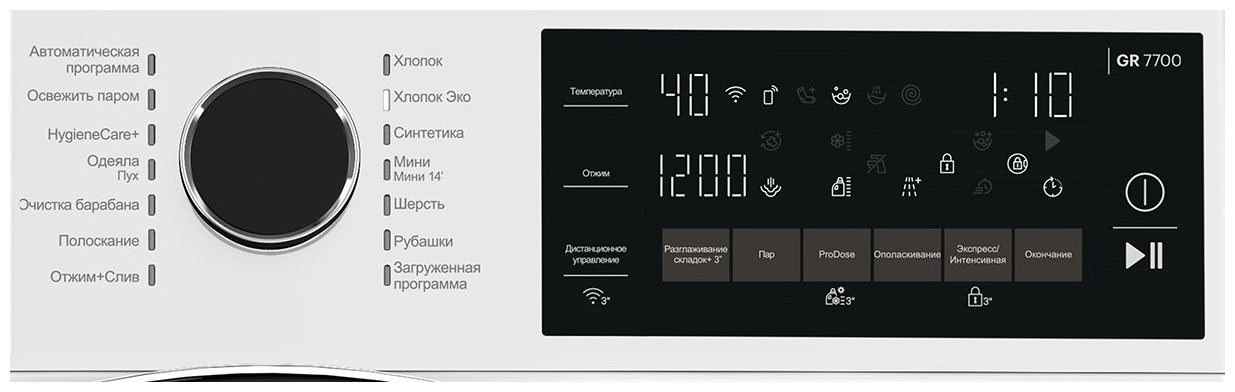 Регулируемая скорость отжима, об./мин. 1600/1400/1200/1000/800/600
