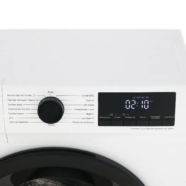 Программы стирки: Предварительная стирка, Стирка детской одежды, Стирка изделий из шерсти, Стирка пуховых вещей, Стирка спортивной одежды, Дополнительное полоскание, Стирка изделий из хлопка, Стирка изделий из синтетики, Экономичная стирка, Стирка темных вещей, Полоскание + отжим, Стирка изделий из хлопка + предварительная стирка
