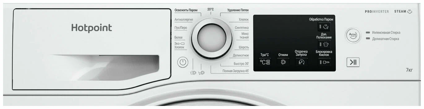быстрая стирка, дополнительное полоскание, отжим, полоскание, предварительная стирка, стирка деликатных тканей, стирка паром, стирка пуховых вещей, стирка синтетики, стирка смешанных тканей, стирка хлопка, стирка цветных вещей, стирка шерсти, удаление пятен, стирка белых вещей, стирка быстро, стирка синтетических тканей