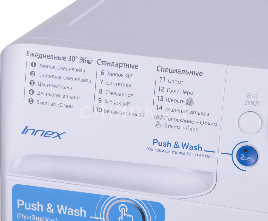 Программы: хлопок ежедневная, синтетика ежедневная, цветные ткани, деликатные ткани, быстрая 30 мин, хлопок 40 , синтетика, смешаннoе, хлопок 60 , бeлый хлопок 90 , спорт, пуx / перо, шерсть, удаление запахов