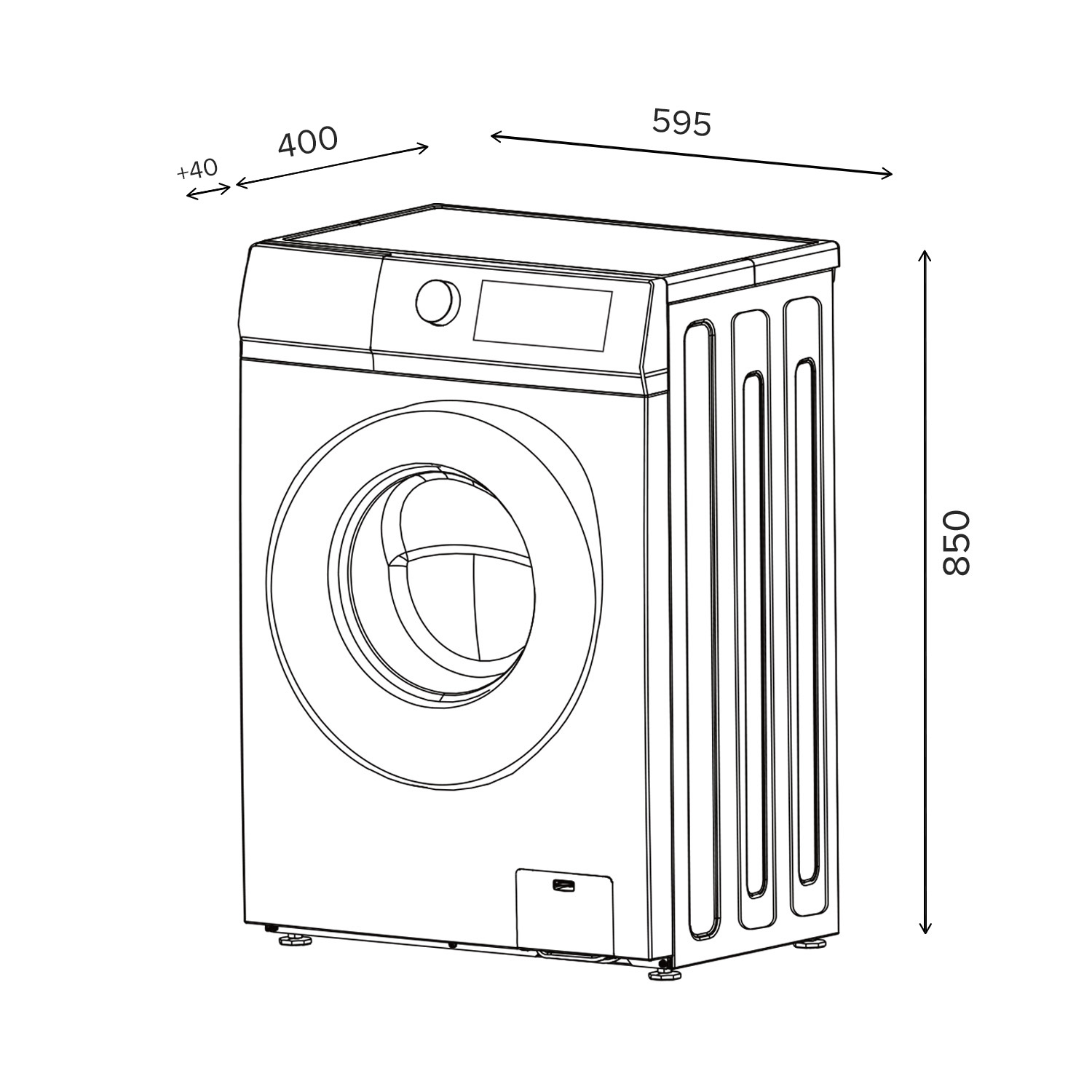 850×595×400 мм, размеры указаны по корпусу изделия, без учета выступающих элементов. Более подробную информацию об изделии вы можете найти в инструкции.