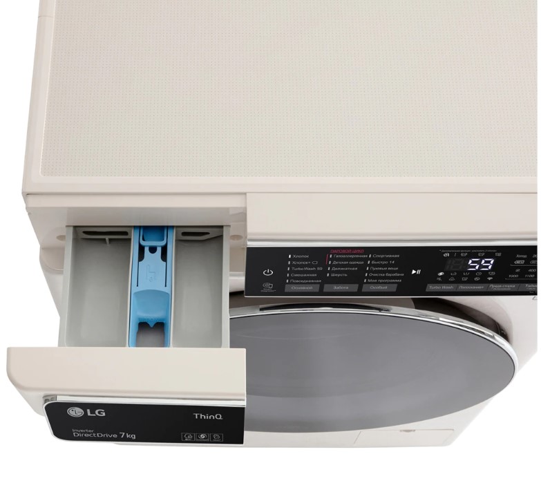 энергопотребление 1.06 кВт/ч; функция пара Steam; Wi-Fi; возможность управления через приложение LG ThinQ; автоперезапуск, индикатор рабочего цикла, индикатор времени до конца цикла, индикатор блокировки дверцы, индикатор ошибок/самодиагностика, индикатор пуск/пауза, индикатор загрузки, индикатор температуры, индикатор скорости отжима