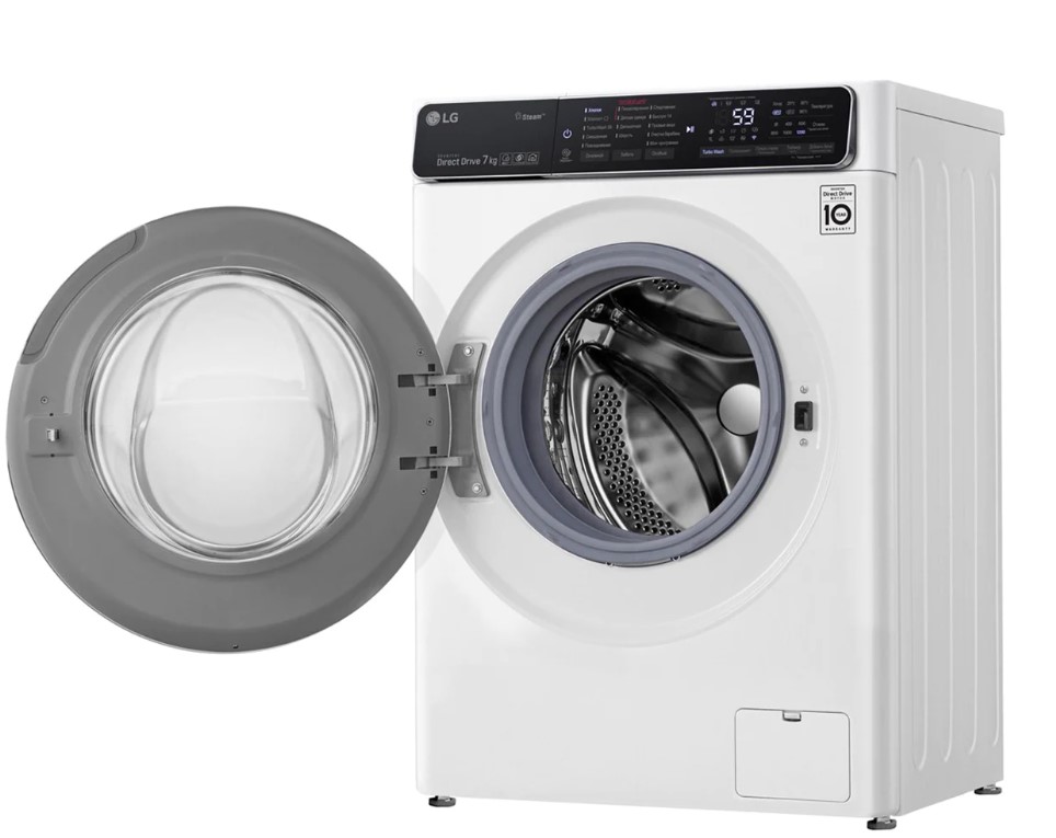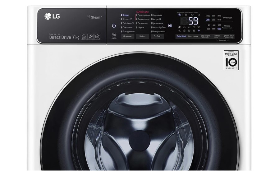 энергопотребление 1.06 кВт/ч; функция пара Steam; Wi-Fi; возможность управления через приложение LG ThinQ; автоперезапуск, индикатор рабочего цикла, индикатор времени до конца цикла, индикатор блокировки дверцы, индикатор ошибок/самодиагностика, индикатор пуск/пауза, индикатор загрузки, индикатор температуры, индикатор скорости отжима