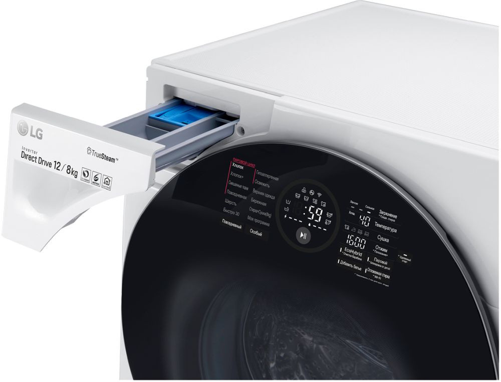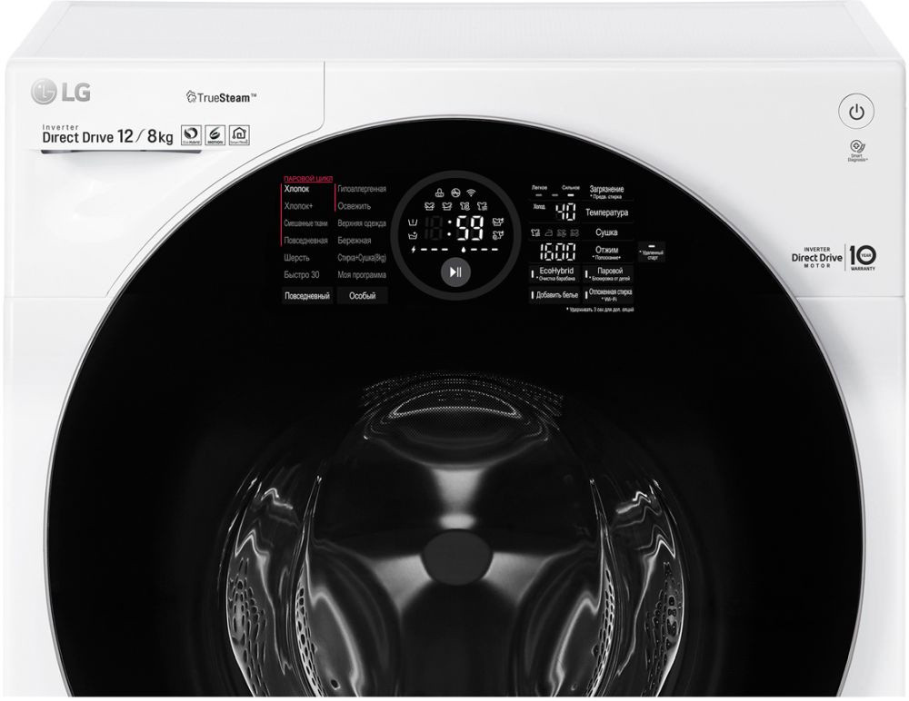 Особенности: Автобалансировка. Детектор загрузки. Автоперезапуск. Интеллектуальная система стирки. Система рециркуляции. Датчик вибрации.Функция сушки EcoHybrid. Функция пара TrueSteam. 6 движений заботы. Мобильная диагностика Smart Diagnosis. Инверторный мотор с прямым приводом. Wi-Fi. Функция очистки барабана.