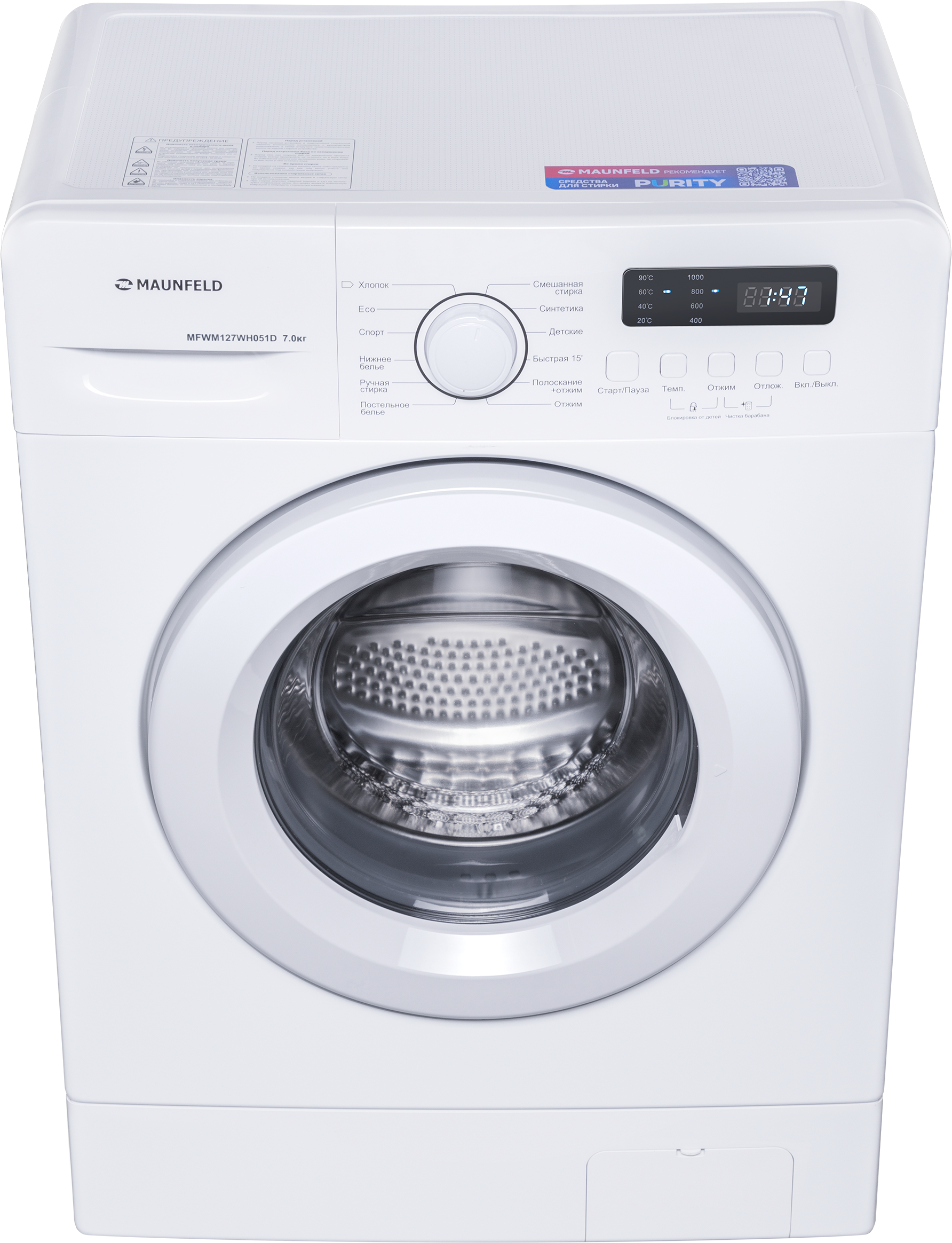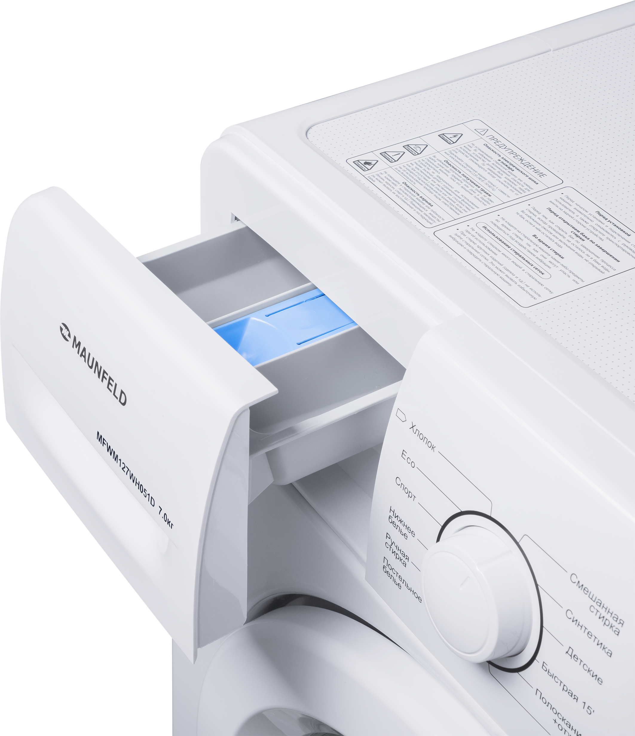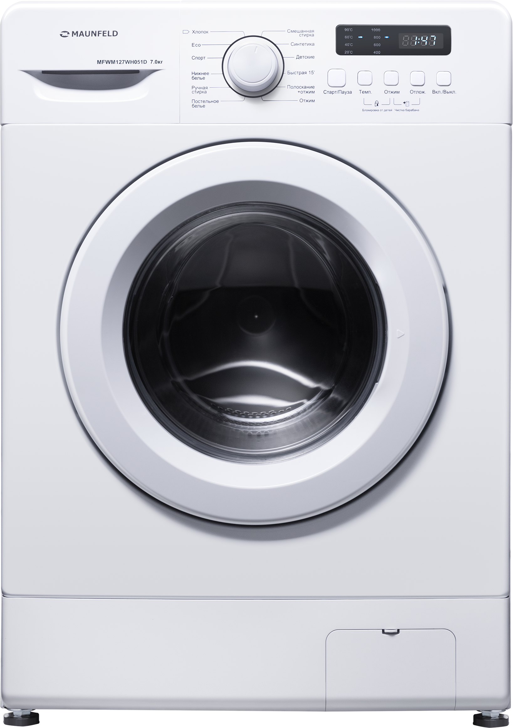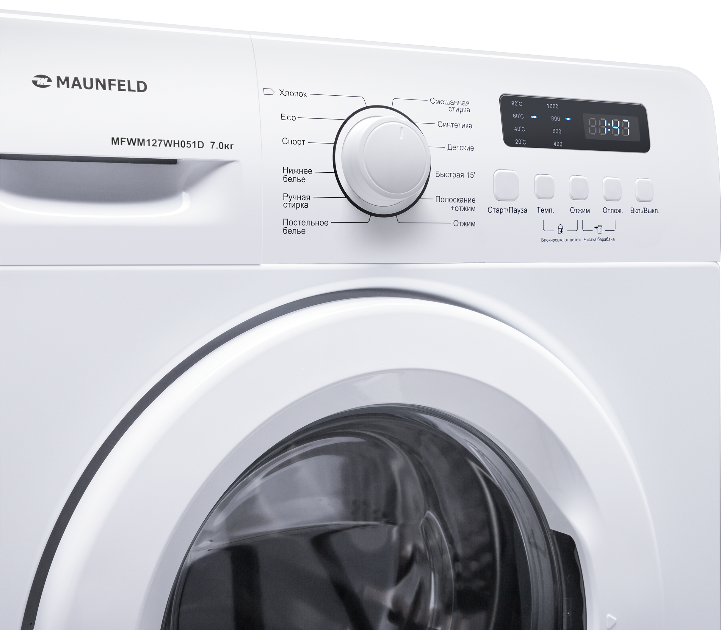 Старт/пауза, Отложенный старт, Чистка барабана. Программы: Хлопок, Эко, Спортивная одежда, Нижнее белье, Ручная стирка, Постельное белье, Смешанная стирка, Синтетика, Детские вещи, Быстрая 15`, Полоскание и отжим, Отжим