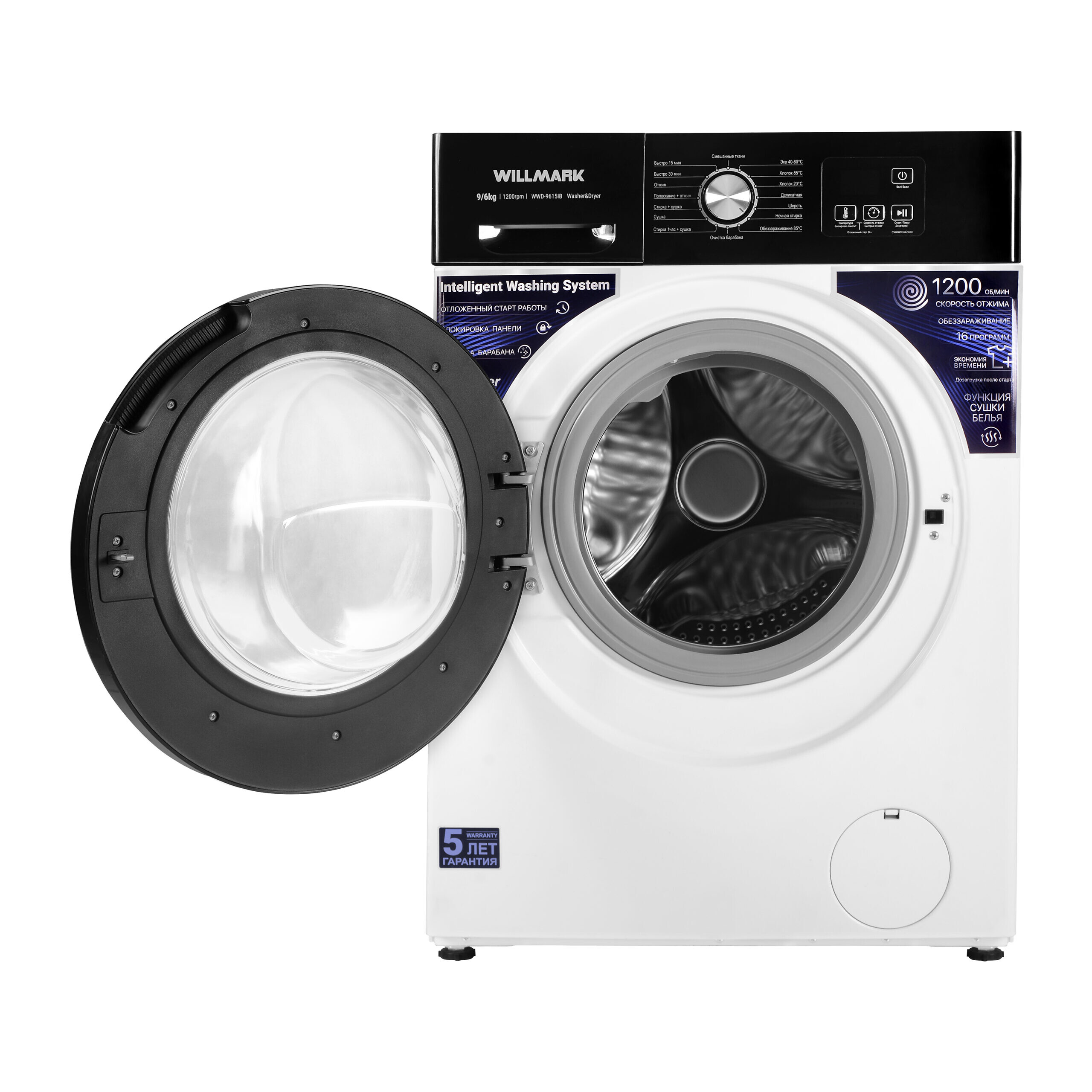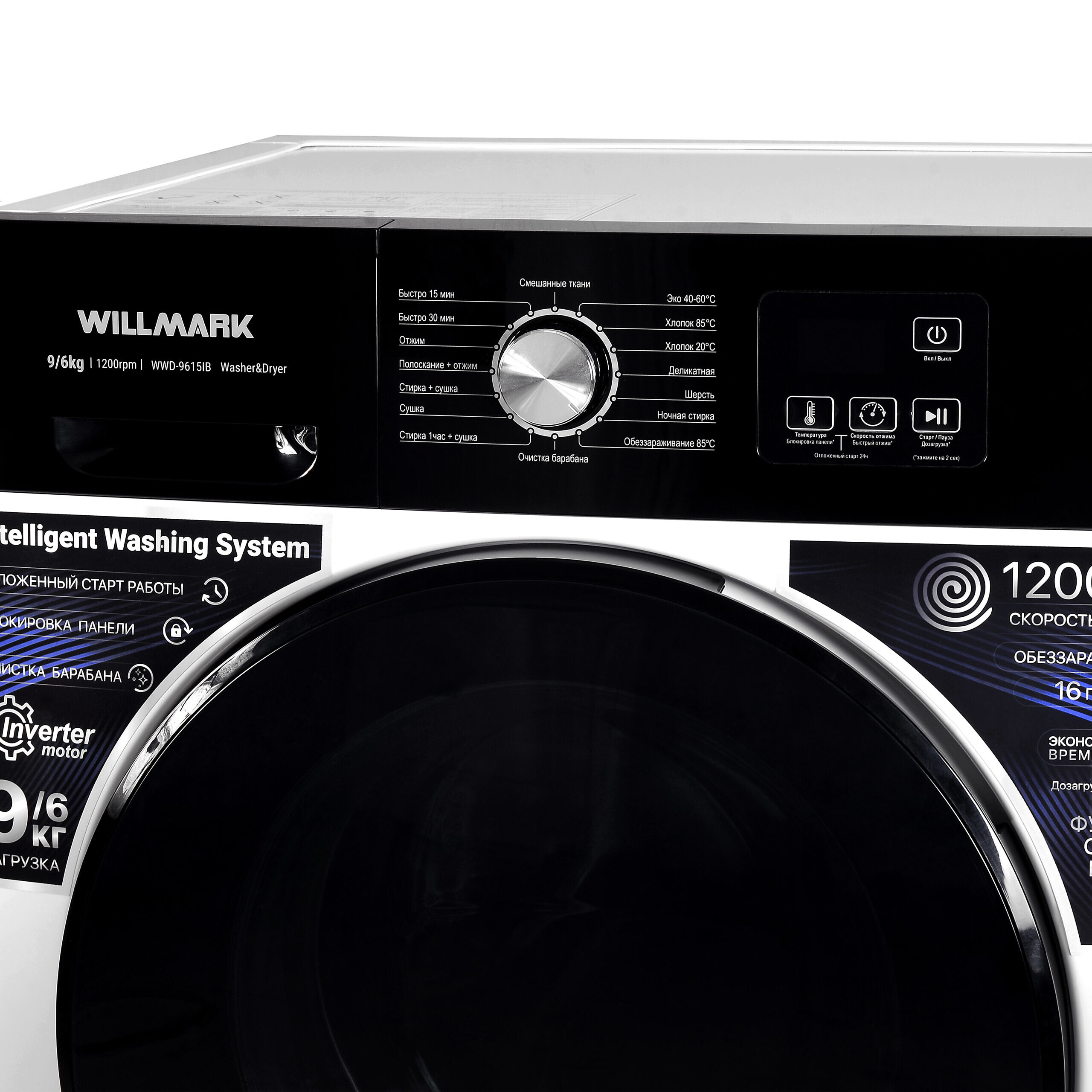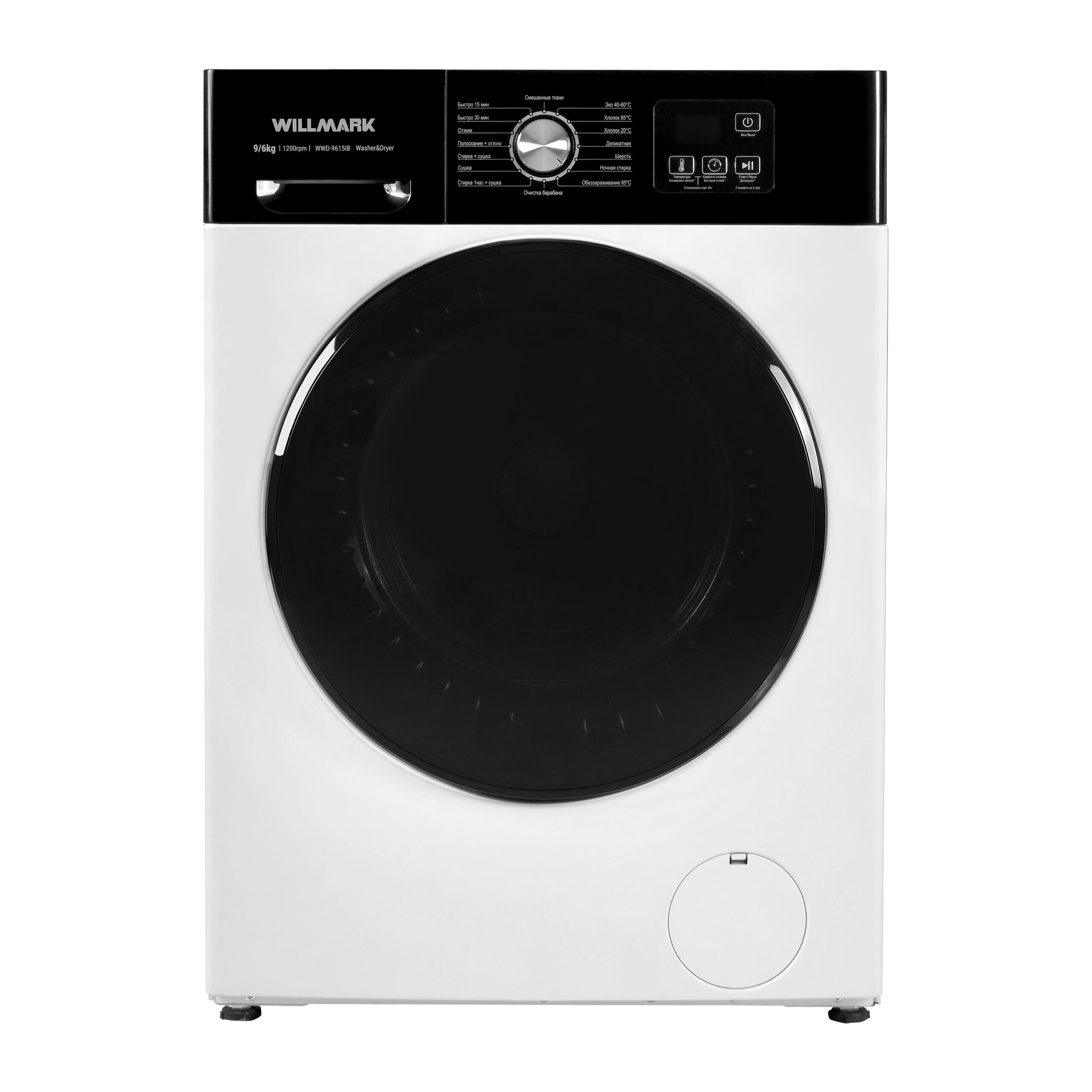 Программы стирки Смешанные ткани, Эко 40-60°C, Хлопок 85°C, Хлопок 20°C, Деликатная, Шерсть, Ночная стирка, Обеззараживание 85°C, Очистка барабана, Стирка 1час+сушка, Сушка, Стирка+сушка, Полоскание+отжим, Быстро 30мин, Быстро 15мин.