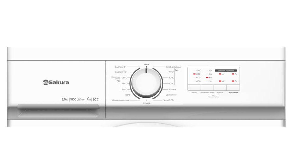 Количество программ: 15 (хлопок холодная, хлопок 20°С, хлопок 40°С, хлопок 60°С, джинсы, деликатная, эко 40-60°С, только отжим, полоскание+отжим, 90°С, смешанные ткани 60°С, смешанные ткани 40°С, смешанные ткани 20°С, быстро 45’, быстро 15’)