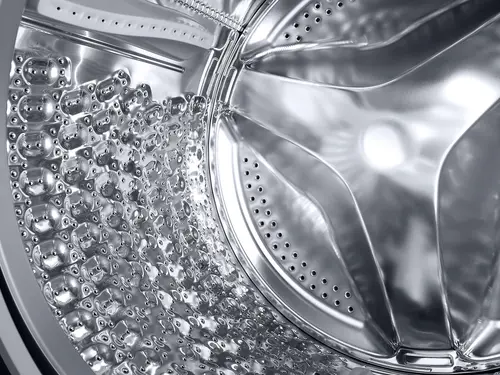 Моющее средство превращается в пузырьки, благодаря чему оно быстро проникает в ткань, легко удаляет загрязнения, защищая ее от повреждения и экономя электроэнергию.