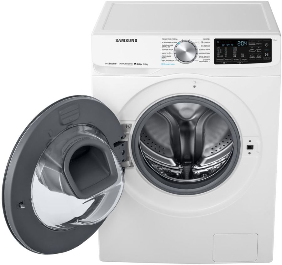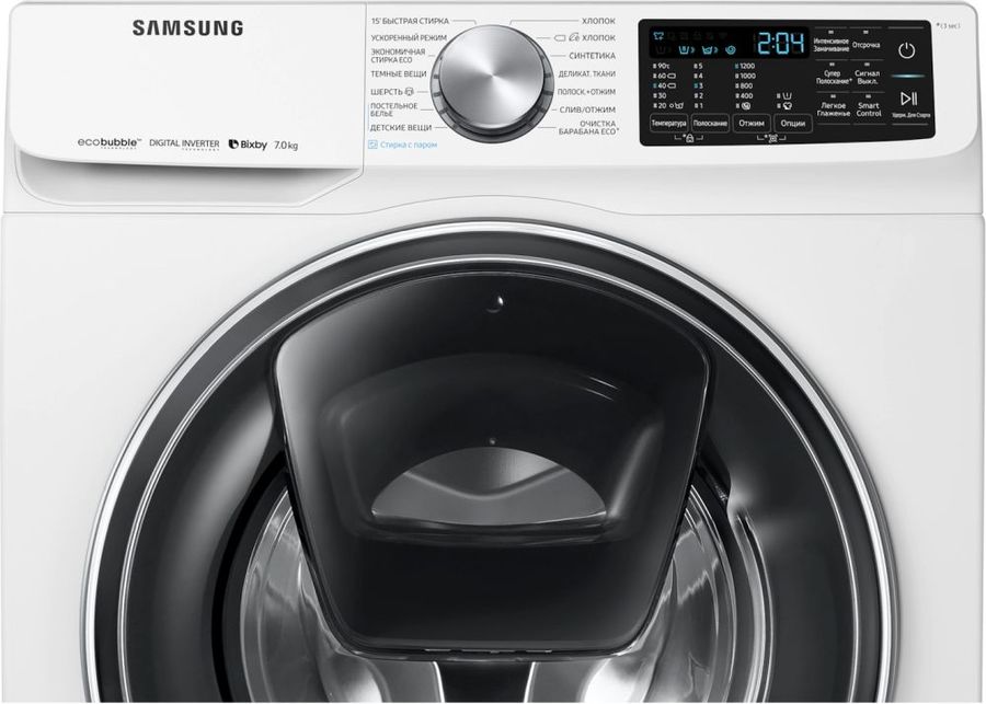 Особенности: Работает с Алисой, AddWash, Bixby, Функция Smart Check, Барабан Swirl, Eco Bubble, Функция экоочистки барабана (Eco Drum Clean+), StayClean Drawer, Super Rinse+,Volt Control