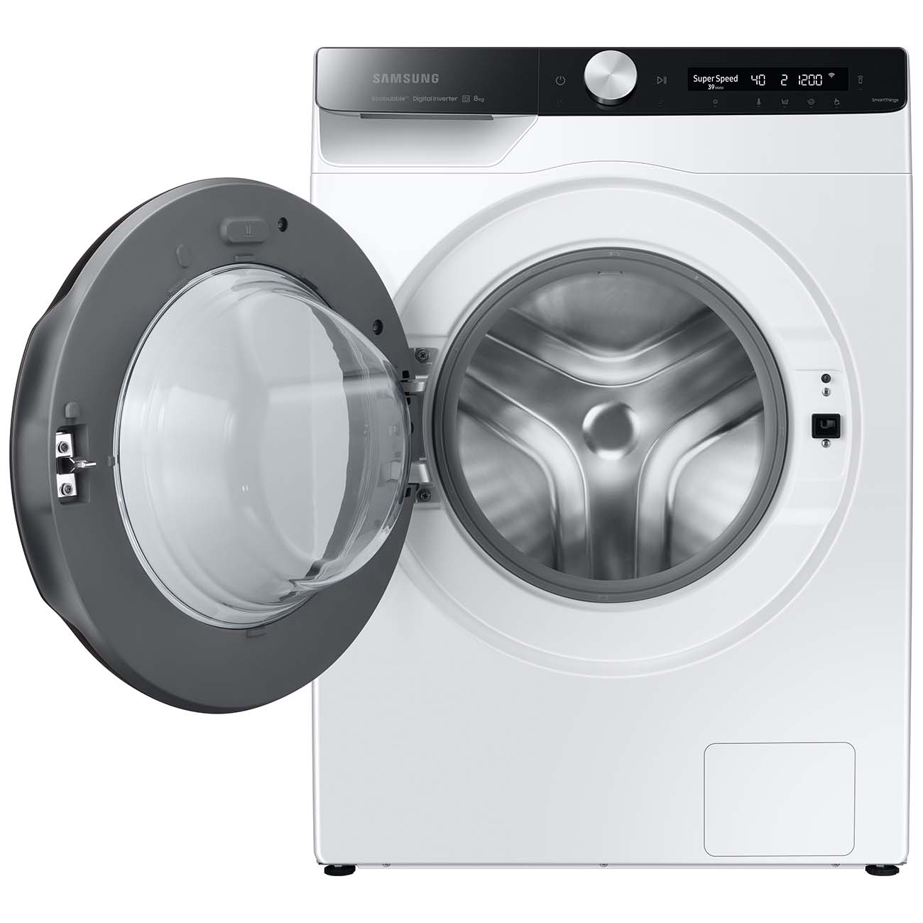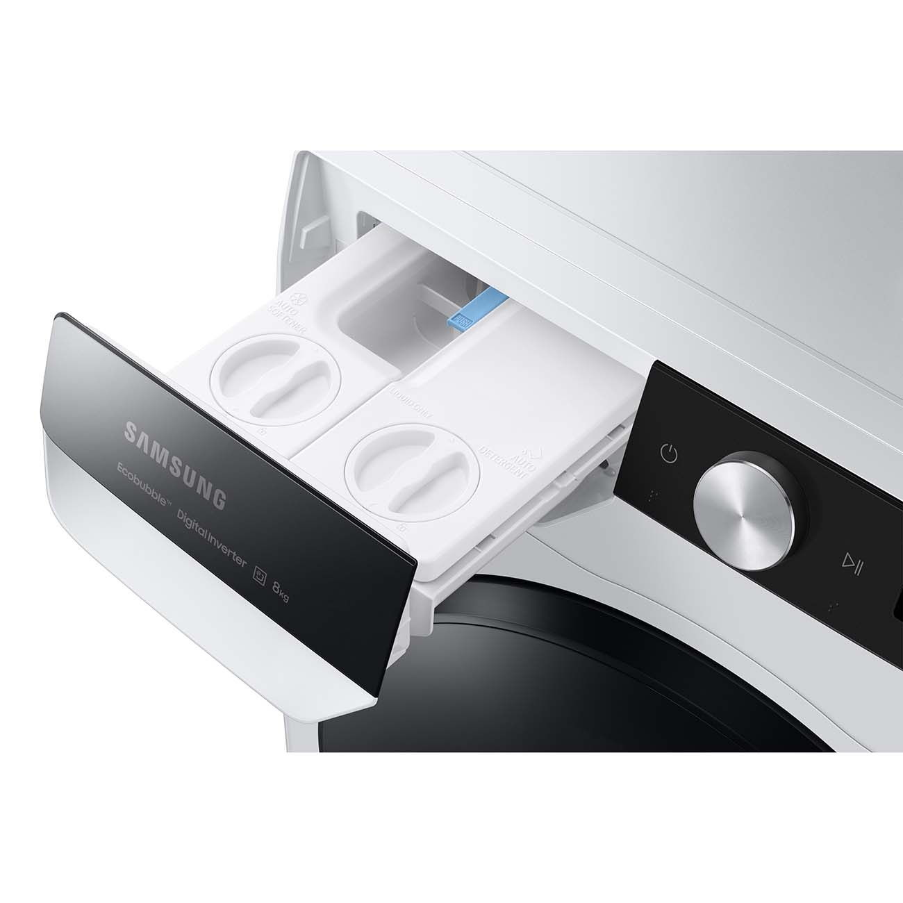 Samsung WW80A6L28BE — узкая стиральная машина с системой интеллектуального управления Al Control. Устройство запоминает часто используемые режимы, предлагает подходящие варианты, в приложении на смартфоне можно создать план, прочитать советы, в том числе по устранению неполадок. Система AquaProtect моментально обнаруживает протечку, останавливает процесс, сливает воду и сообщает о проблеме.