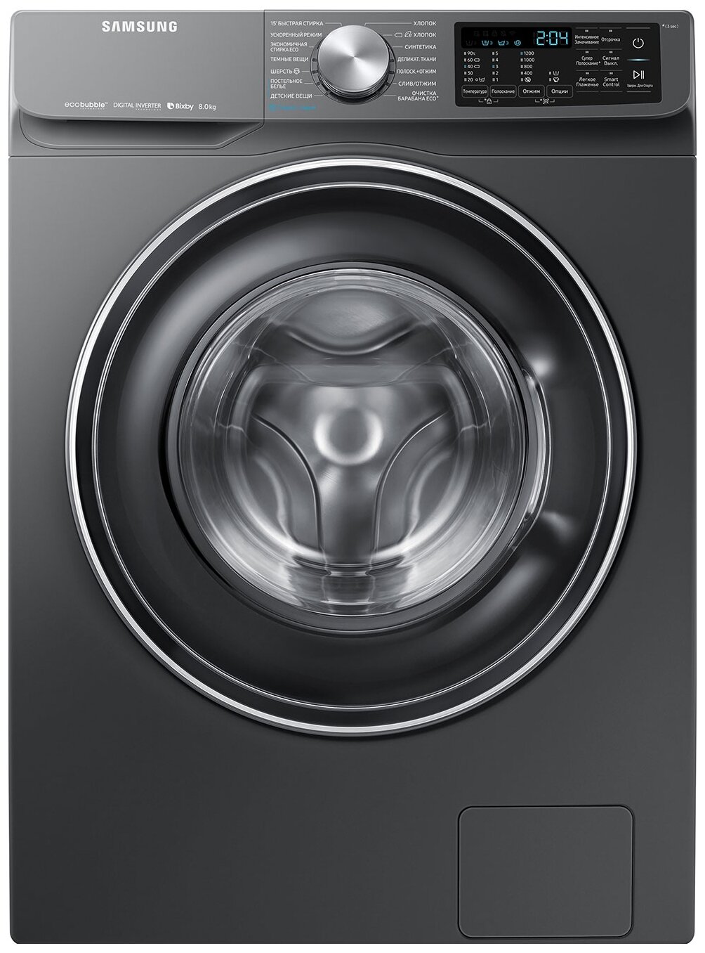 электропотребление за цикл 1,04 кВт*ч; функция Smart Check (умная диагностика); удаленное управление Bixby; функция Eco Drum Clean (эко-очистка барабана); функция Volt Control (защита от перепадов напряжения)