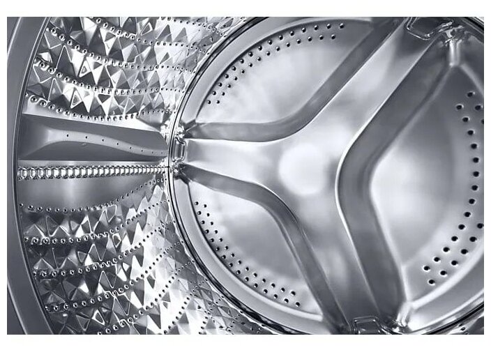 Стиральная машина оснащена долговечным инверторным двигателем, который работает бесшумно.