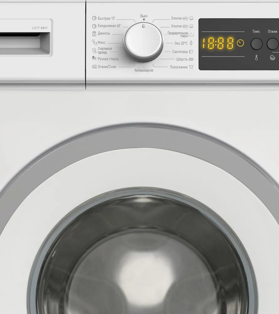 Программы стирки: Быстрая стирка, Ежедневная стирка, Замачивание, Интенсивная стирка, Отжим, Полоскание, Предварительная стирка, Ручная стирка, Слив, Стирка деликатных тканей, Стирка изделий из синтетики, Стирка изделий из хлопка, Стирка изделий из шерсти