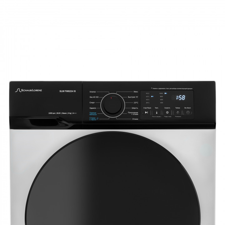 Хлопок, Микс (Смешанные ткани), Спорт, Шерсть, Одеяло, Стирка с паром, Одежда малыша, Быстрая стирка 15 мин., Эко 40-60, Программа 20° С, Отжим, Полоскание отжим.