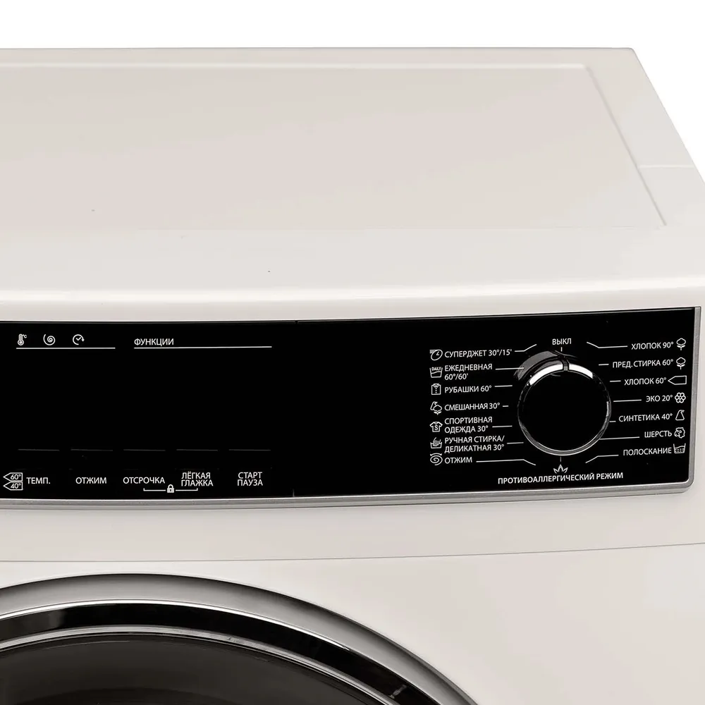 Программы стирки: Стирка изделий из хлопка, Отжим, Ежедневная стирка, Предварительная стирка, Стирка деликатных тканей, Стирка изделий из синтетики, Стирка изделий из хлопка + предварительная стирка, Стирка изделий из шерсти, Стирка спортивной одежды, Стирка смешанных тканей