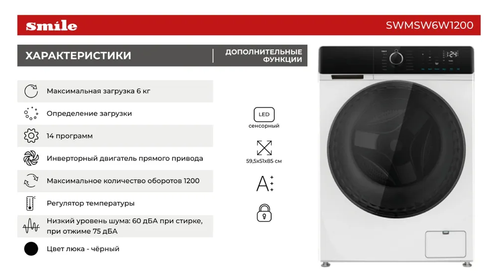 Программы стирки: Быстрая стирка, Экономичная стирка, Полоскание + отжим, Отжим, Стирка изделий из хлопка, Стирка смешанных тканей, Стирка изделий из шерсти, Стирка изделий из шелка, Стирка нижнего белья, Стирка пуховых вещей