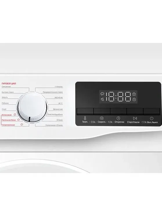 Программы стирки: Быстрая стирка, Интенсивная стирка, Стирка изделий из шерсти, Стирка рубашек, Стирка спортивной одежды, Удаление пятен, Полоскание + отжим, Отжим