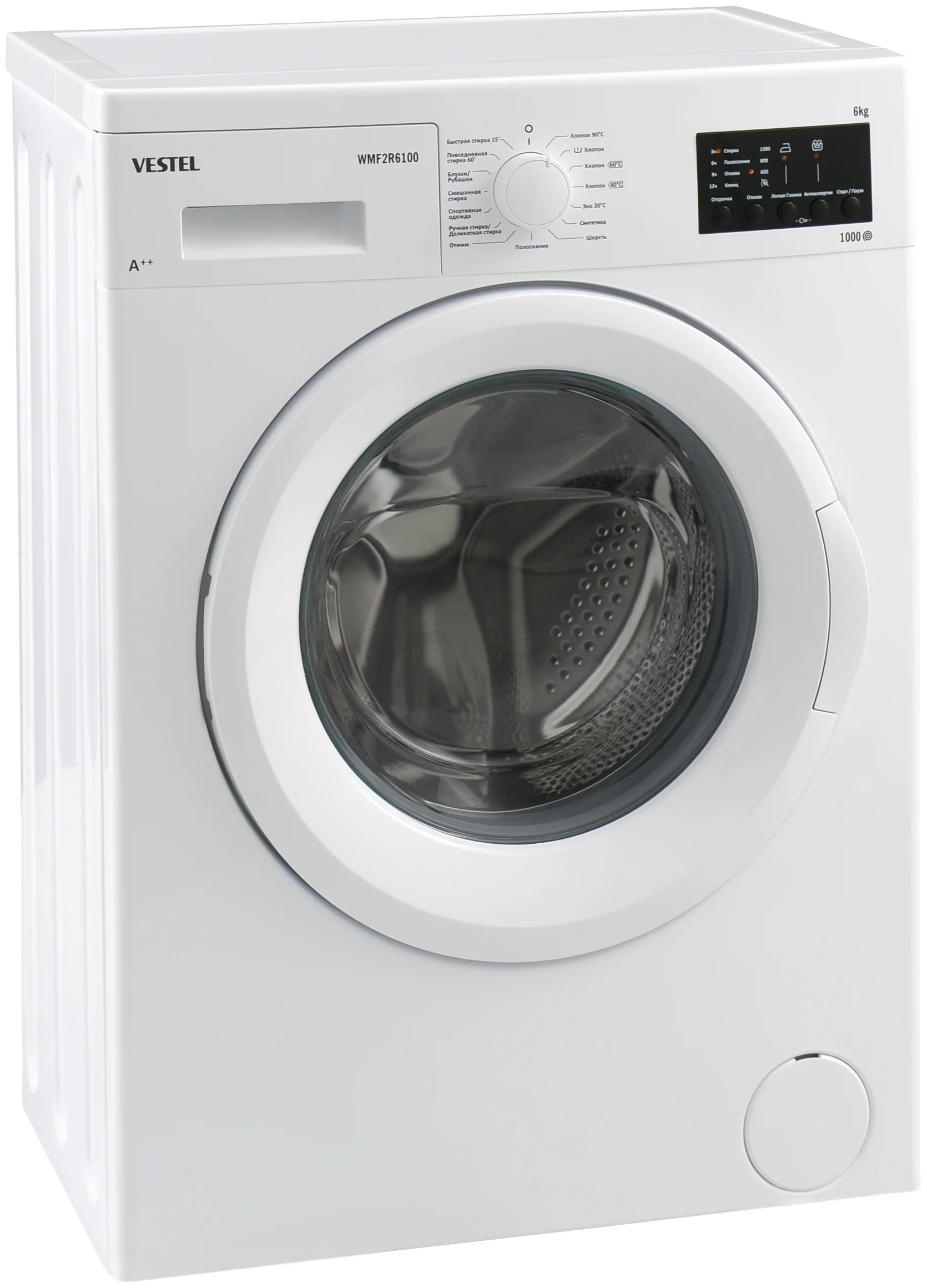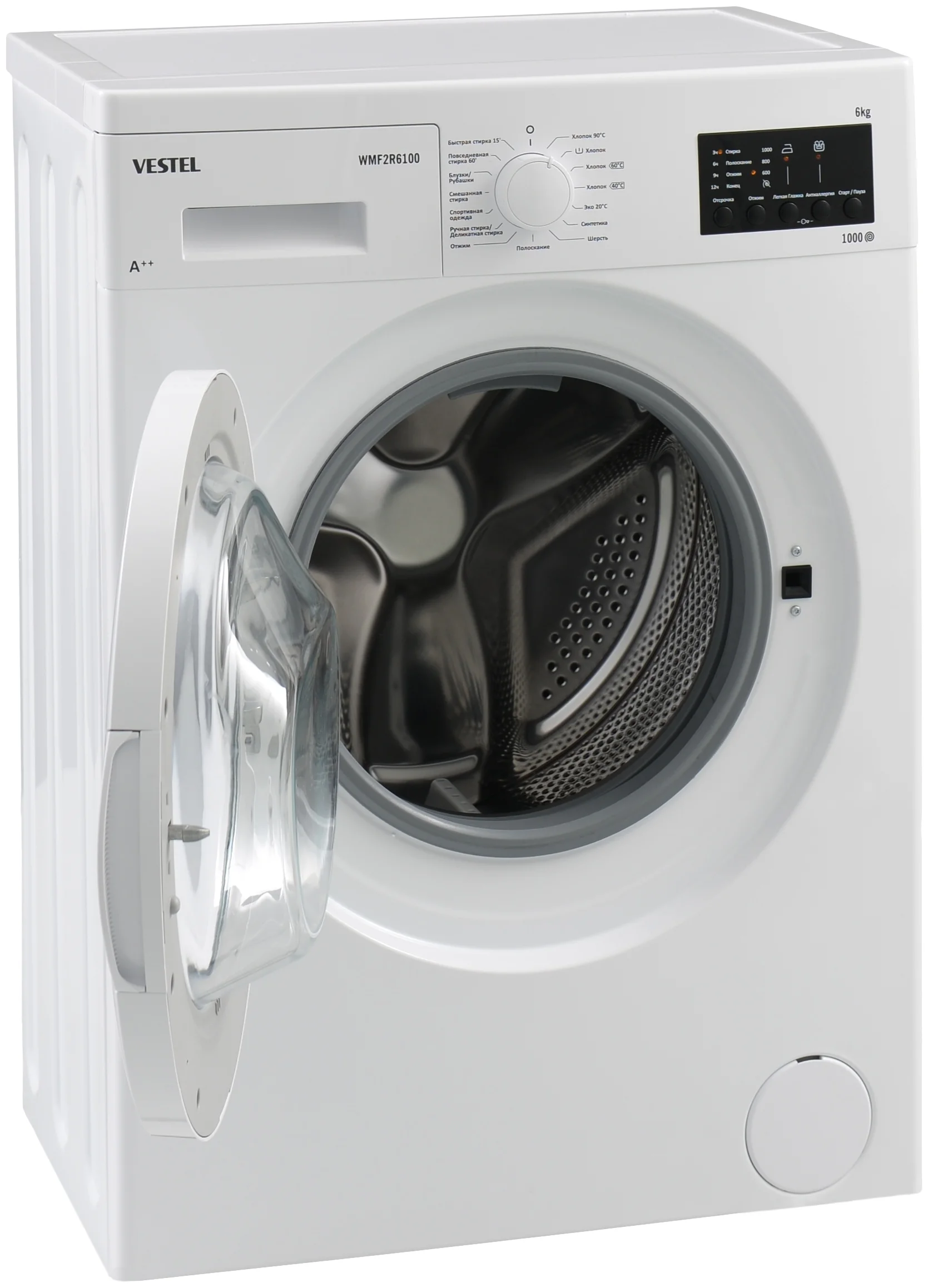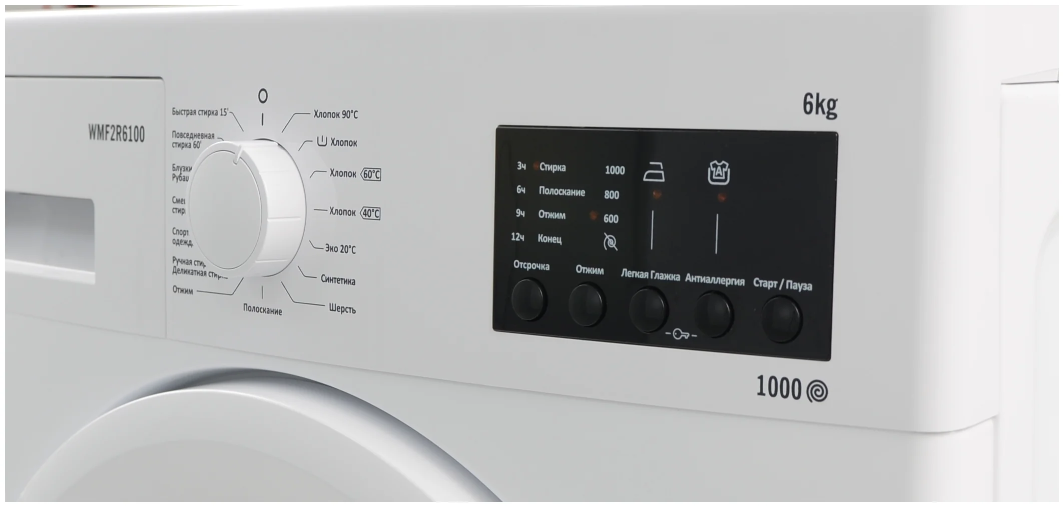 выбор скорости отжима, отложенный старт, контроль баланса