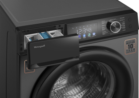 Программы: Умная стирка, Хлопок, Смешанные ткани, Шерсть, Шёлк, Нижнее белье, Пуховик, Постельное белье, Удаление пятен, Стирка с паром, Быстрая 15’, Эко стирка, Очистка барабана, Отжим, Полоскание + Отжим