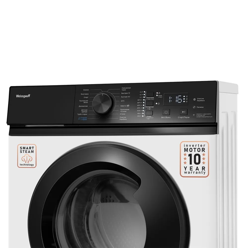 Cтиральная машина с инвертором и паром Weissgauff WM 4527 DC Inverter Steam