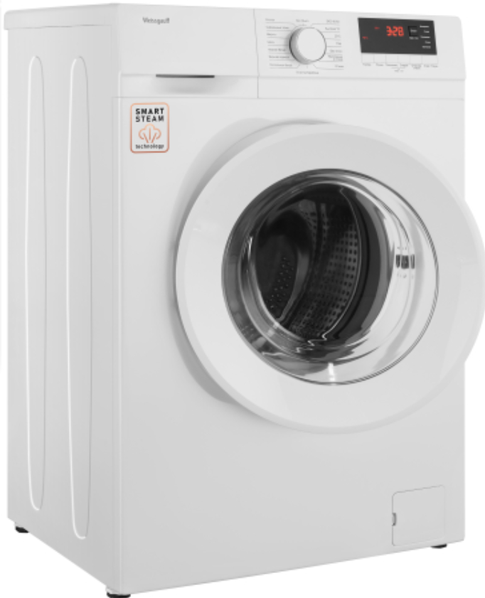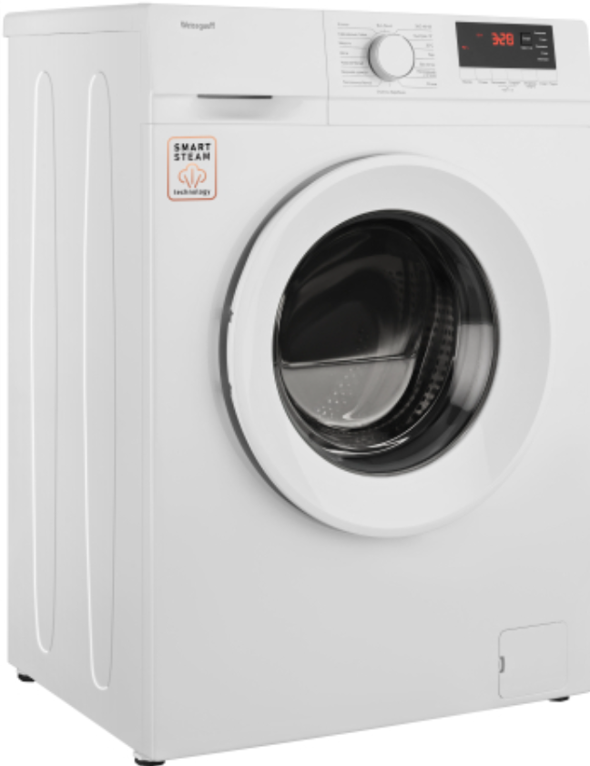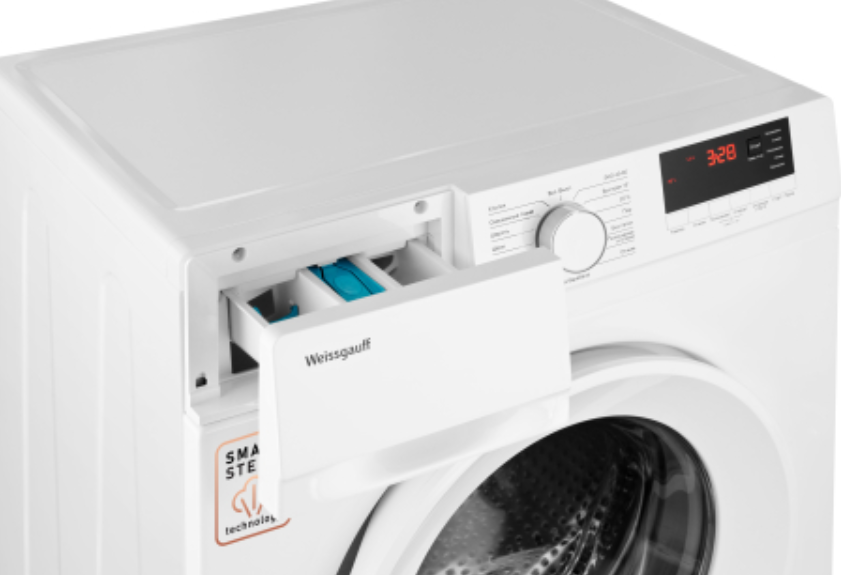Отдельностоящая стиральная машина Weissgauff, оснащенная функцией пара и автопрограммой Smart, имеющая показатели загрузки до 6 кг белья и скорости отжима до 1000 оборотов в минуту