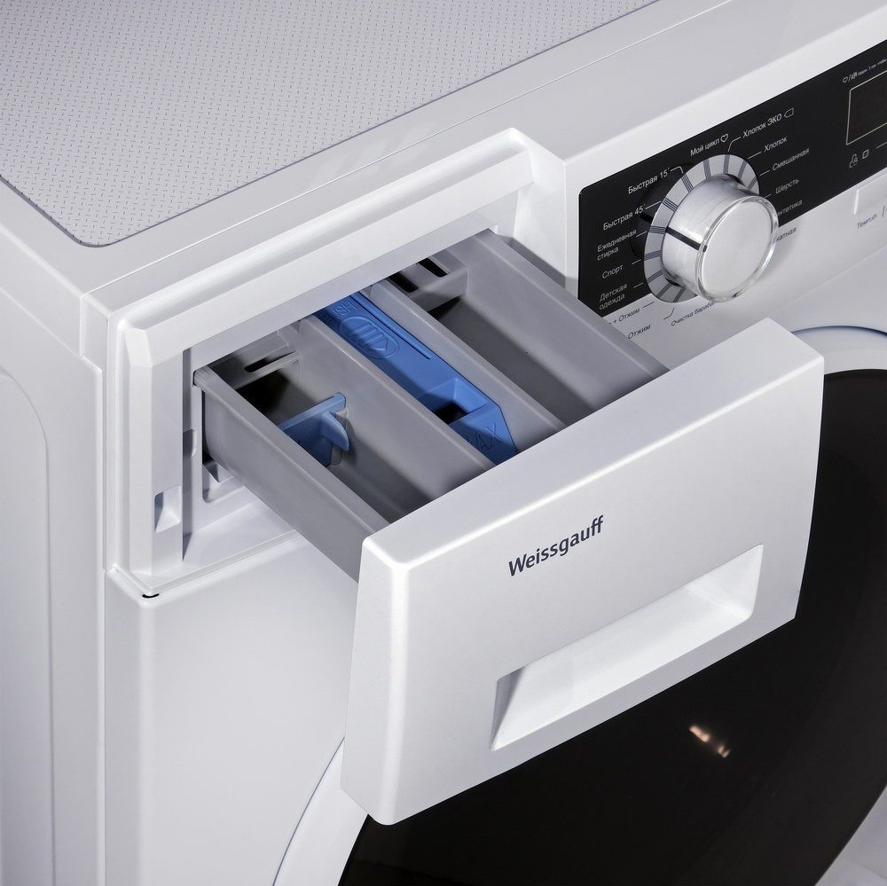 специальные программы: Быстрая 15 минут, Быстрая 45 минут; самоочистка барабана, Time Management, универсальный двигатель, тихий режим