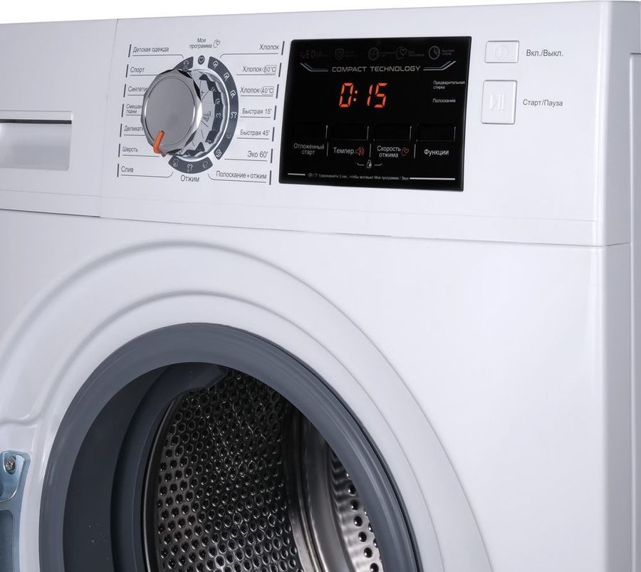 Программы: Хлопок, Хлопок 60C, Хлопок 40C, Шерсть, Деликатная, Быстрая 15’, Смешанные ткани, Быстрая 45’, Слив, Эко 60’, Детское одежда, Полоскание + Отжим, Синтетика, Отжим, Спорт, Моя программа
